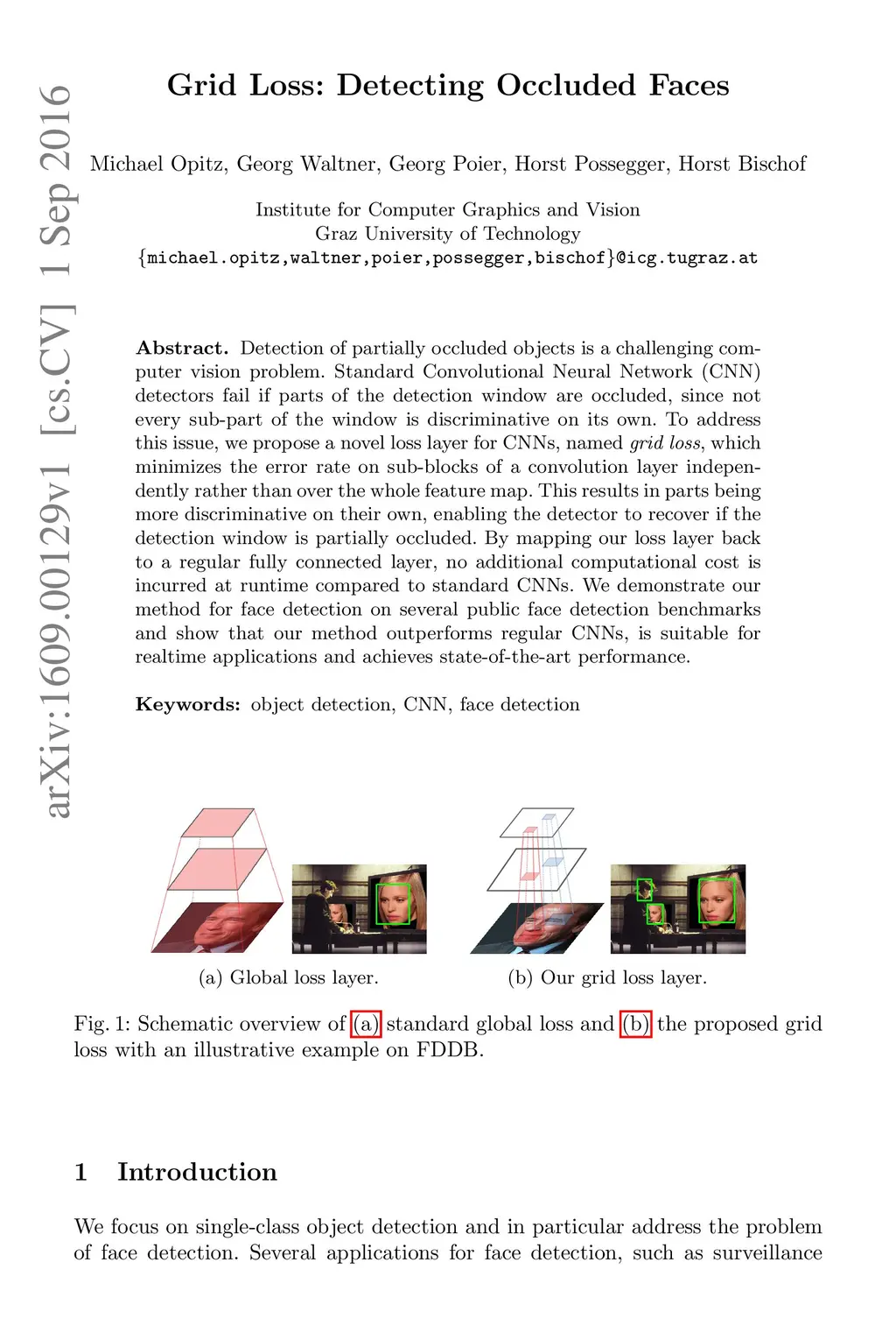 Detection of partially occluded objects is a challenging computer vision problem. Standard Convolutional Neural Network (CNN) detectors fail if parts of the detection window are occluded, since not every sub-part of the window is discriminative on its own. To address this issue, we propose a novel loss layer for CNNs, named grid loss, which minimizes the error rate on sub-blocks of a convolution layer independently rather than over the whole feature map. This results in parts being more discriminative on their own, enabling the detector to recover if the detection window is partially occluded. By mapping our loss layer back to a regular fully connected layer, no additional computational cost is incurred at runtime compared to standard CNNs. We demonstrate our method for face detection on several public face detection benchmarks and show that our method outperforms regular CNNs, is suitable for realtime applications and achieves state-of-the-art performance.