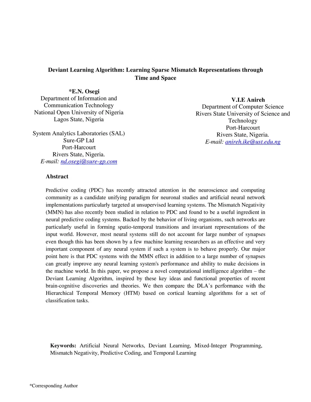 Predictive coding (PDC) has recently attracted attention in the neuroscience and computing community as a candidate unifying paradigm for neuronal studies and artificial neural network implementations particularly targeted at unsupervised learning systems. The Mismatch Negativity (MMN) has also recently been studied in relation to PC and found to be a useful ingredient in neural predictive coding systems. Backed by the behavior of living organisms, such networks are particularly useful in forming spatio-temporal transitions and invariant representations of the input world. However, most neural systems still do not account for large number of synapses even though this has been shown by a few machine learning researchers as an effective and very important component of any neural system if such a system is to behave properly. Our major point here is that PDC systems with the MMN effect in addition to a large number of synapses can greatly improve any neural learning system's performance and ability to make decisions in the machine world. In this paper, we propose a novel bio-mimetic computational intelligence algorithm -- the Deviant Learning Algorithm, inspired by these key ideas and functional properties of recent brain-cognitive discoveries and theories. We also show by numerical experiments guided by theoretical insights, how our invented bio-mimetic algorithm can achieve competitive predictions even with very small problem specific data.