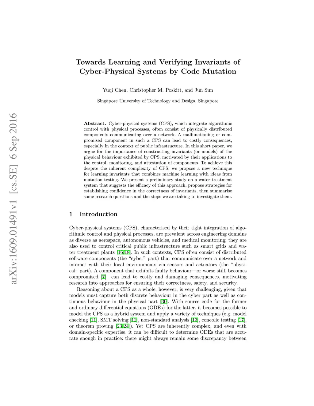 Cyber-physical systems (CPS), which integrate algorithmic control with physical processes, often consist of physically distributed components communicating over a network. A malfunctioning or compromised component in such a CPS can lead to costly consequences, especially in the context of public infrastructure. In this short paper, we argue for the importance of constructing invariants (or models) of the physical behaviour exhibited by CPS, motivated by their applications to the control, monitoring, and attestation of components. To achieve this despite the inherent complexity of CPS, we propose a new technique for learning invariants that combines machine learning with ideas from mutation testing. We present a preliminary study on a water treatment system that suggests the efficacy of this approach, propose strategies for establishing confidence in the correctness of invariants, then summarise some research questions and the steps we are taking to investigate them.