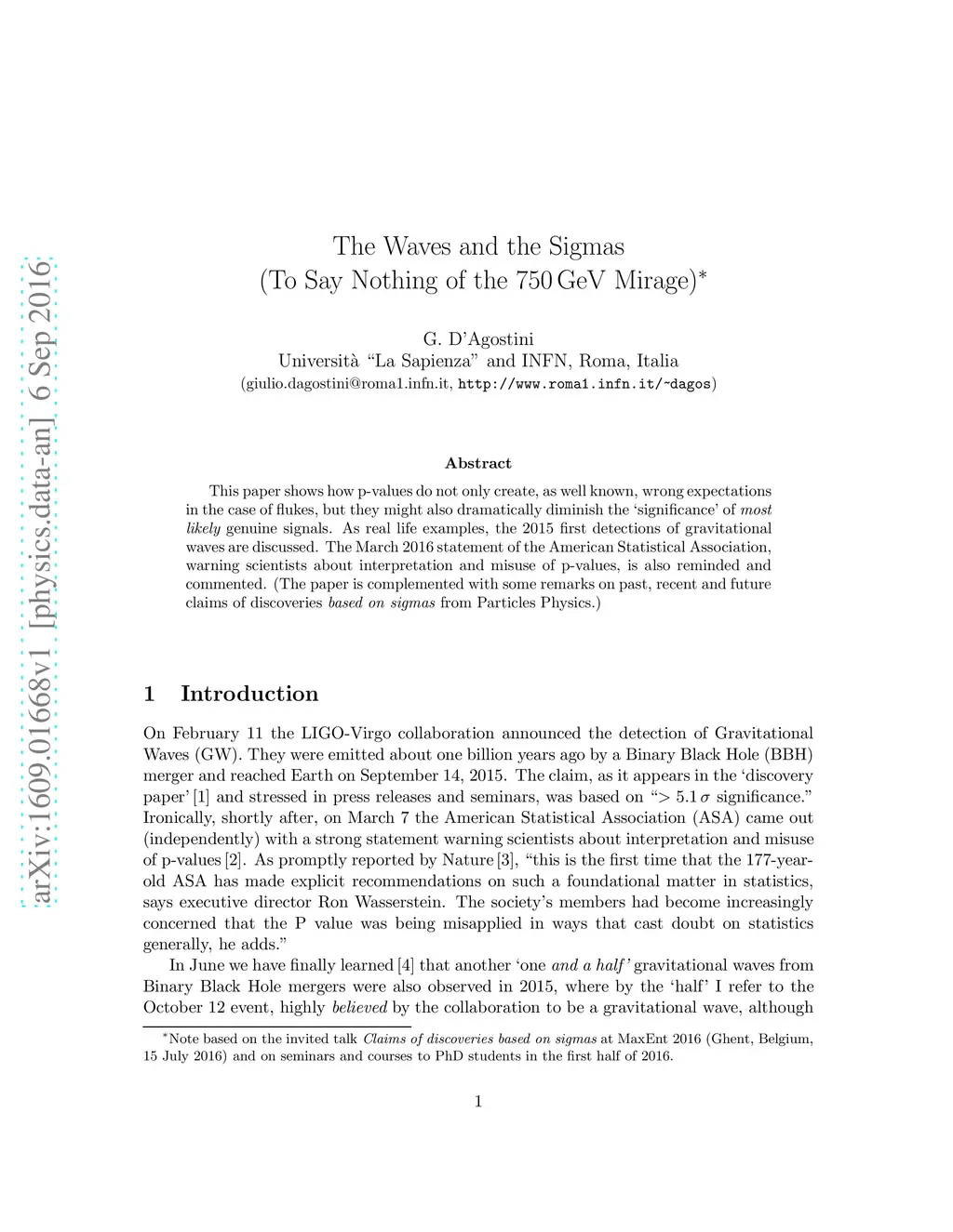 This paper shows how p-values do not only create, as well known, wrong expectations in the case of flukes, but they might also dramatically diminish the `significance' of most likely genuine signals. As real life examples, the 2015 first detections of gravitational waves are discussed. The March 2016 statement of the American Statistical Association, warning scientists about interpretation and misuse of p-values, is also reminded and commented. (The paper is complemented with some remarks on past, recent and future claims of discoveries based on sigmas from Particles Physics.)