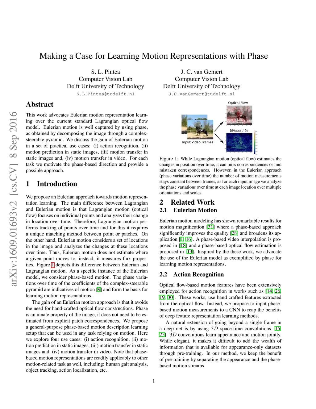This work advocates Eulerian motion representation learning over the current standard Lagrangian optical flow model. Eulerian motion is well captured by using phase, as obtained by decomposing the image through a complex-steerable pyramid. We discuss the gain of Eulerian motion in a set of practical use cases: (i) action recognition, (ii) motion prediction in static images, (iii) motion transfer in static images and, (iv) motion transfer in video. For each task we motivate the phase-based direction and provide a possible approach.