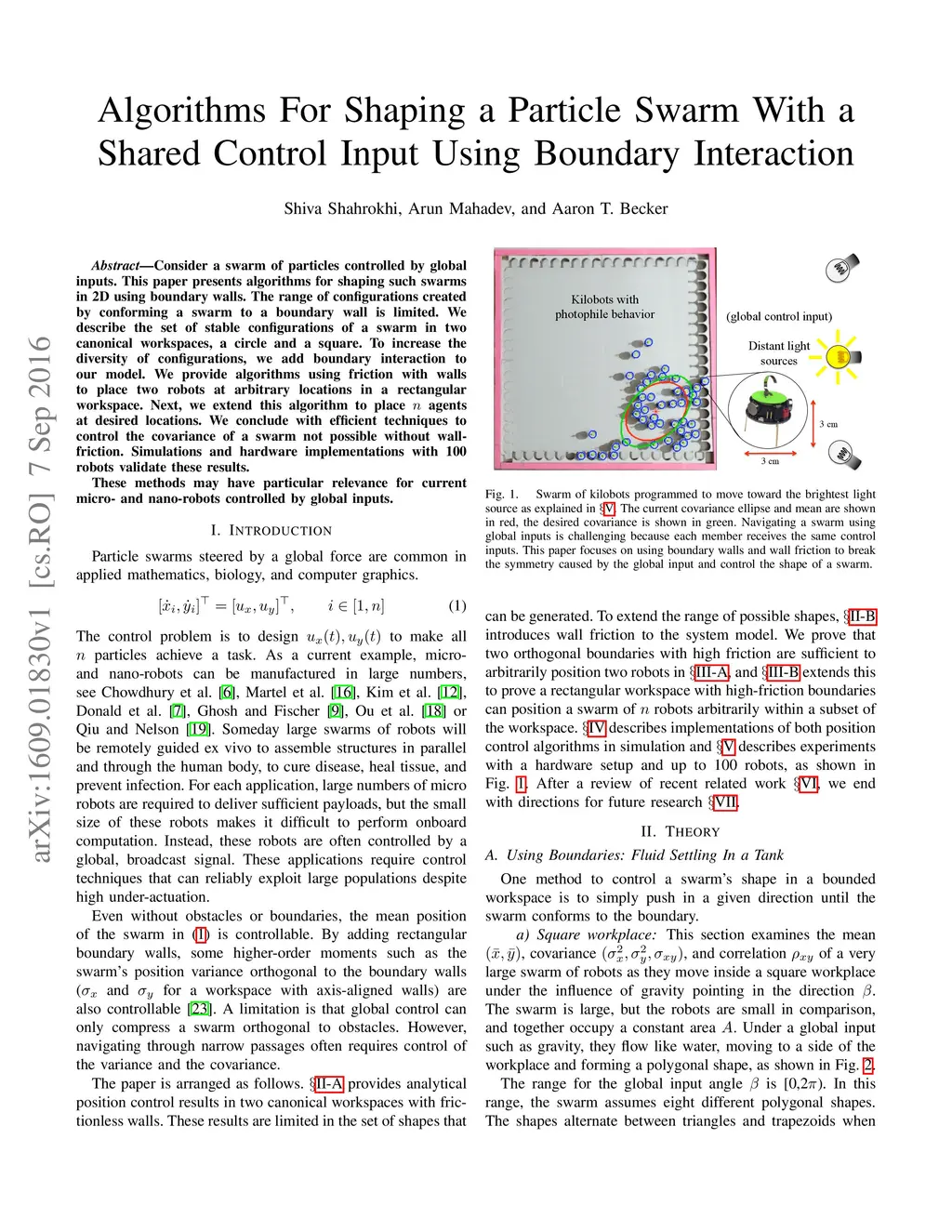Algorithms For Shaping a Particle Swarm With a Shared Control Input