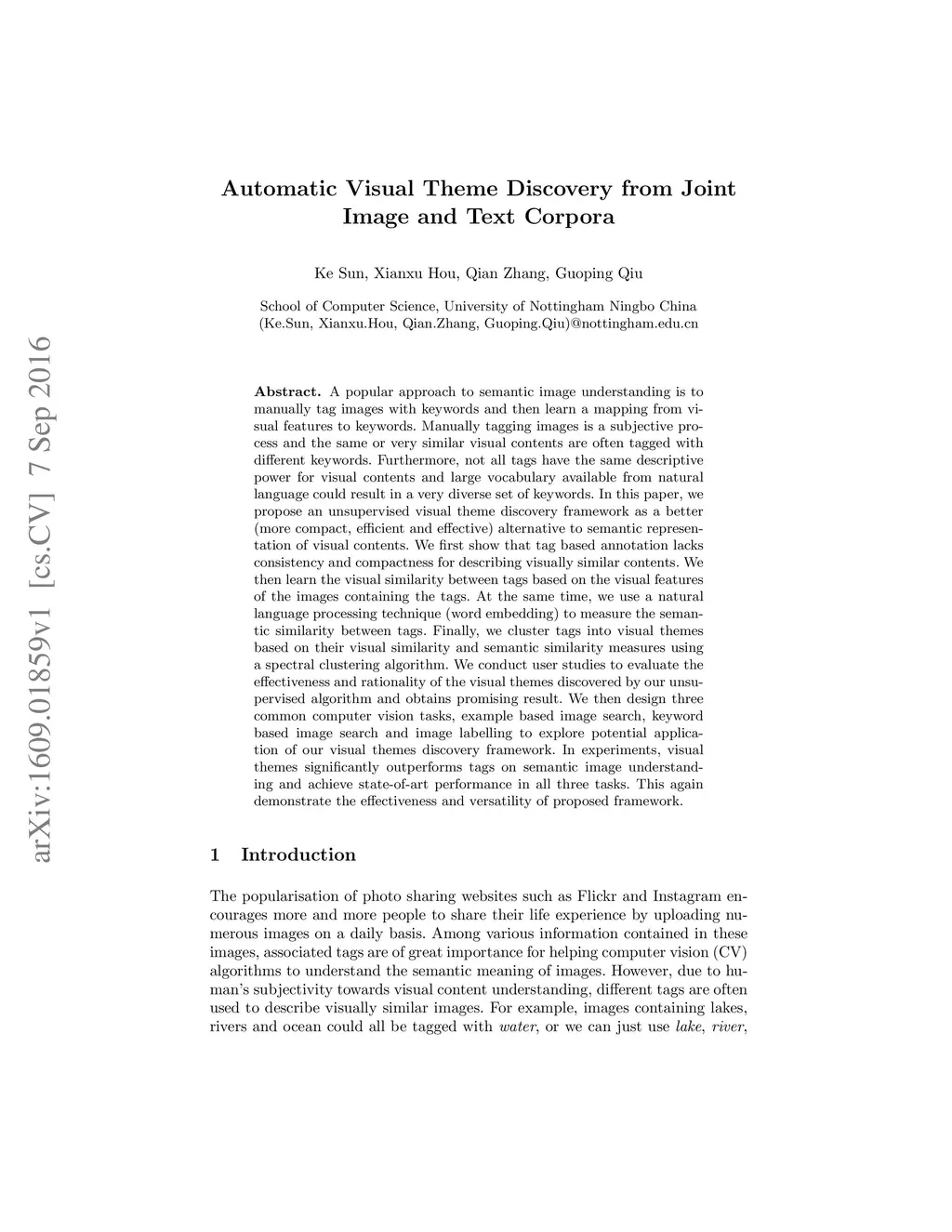 Automatic Visual Theme Discovery from Joint Image and Text Corpora