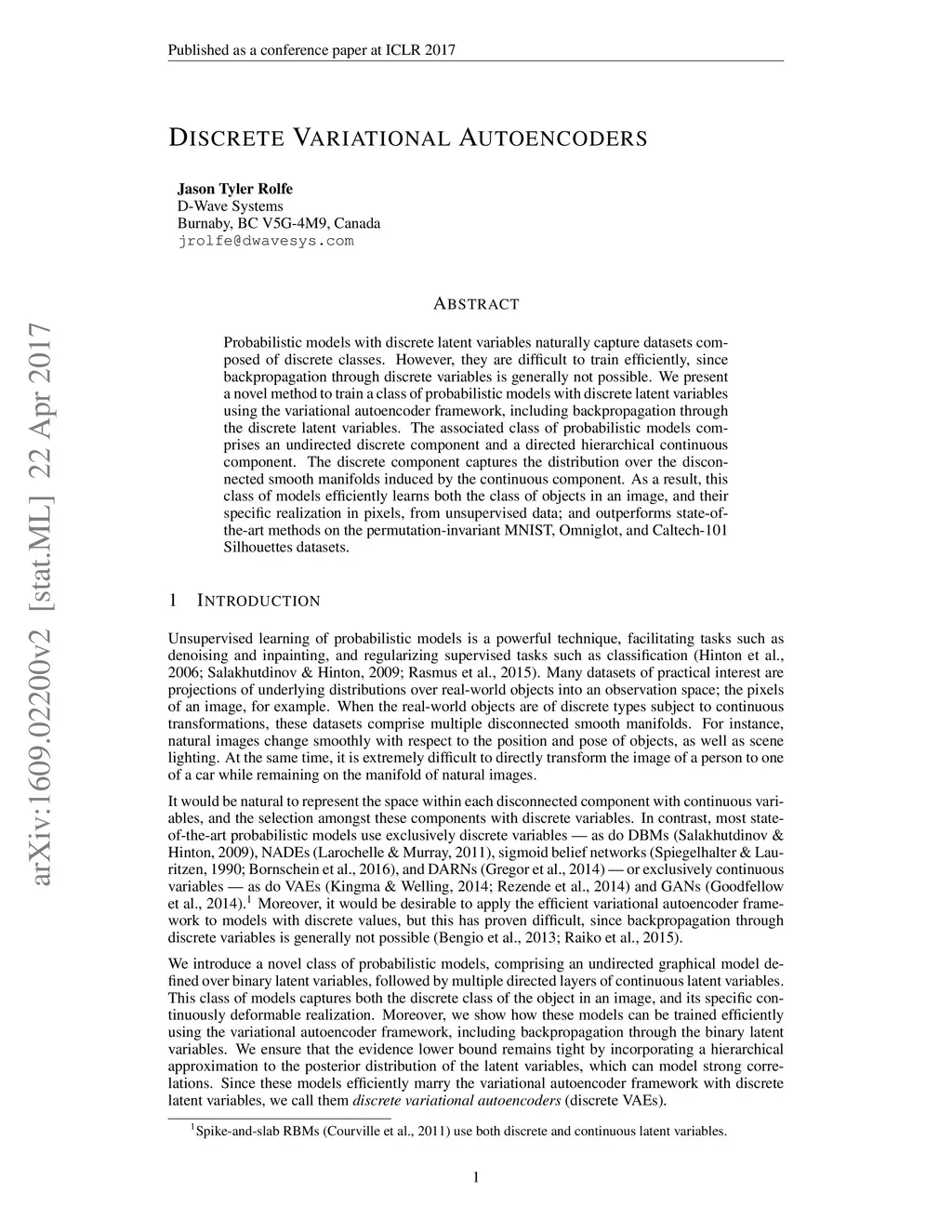 Discrete Variational Autoencoders
