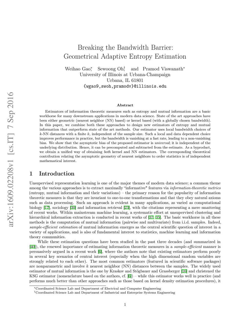 Breaking the Bandwidth Barrier: Geometrical Adaptive Entropy Estimation