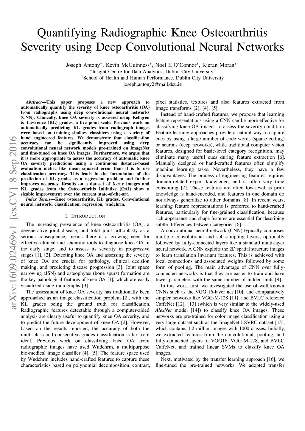Quantifying Radiographic Knee Osteoarthritis Severity using Deep