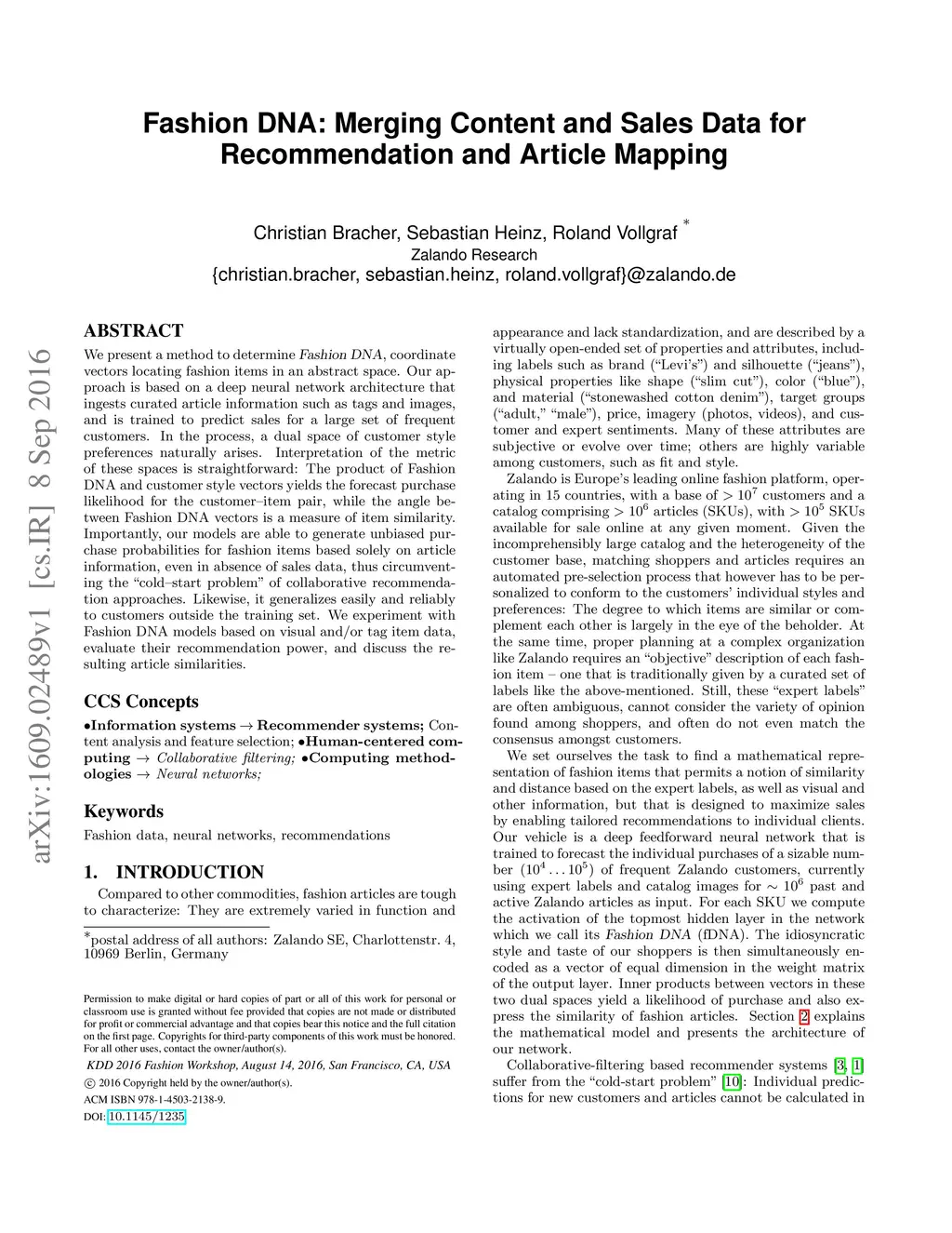 Fashion DNA: Merging Content and Sales Data for Recommendation and