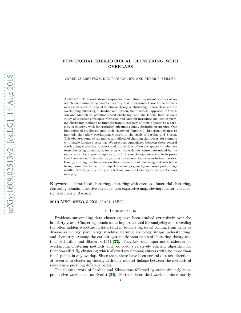 This work draws inspiration from three important sources of research on dissimilarity-based clustering and intertwines those three threads into a consistent principled functorial theory of clustering. Those three are the overlapping clustering of Jardine and Sibson, the functorial approach of Carlsson and M\'{e}moli to partition-based clustering, and the Isbell/Dress school's study of injective envelopes. Carlsson and M\'{e}moli introduce the idea of viewing clustering methods as functors from a category of metric spaces to a category of clusters, with functoriality subsuming many desirable properties. Our first series of results extends their theory of functorial clustering schemes to methods that allow overlapping clusters in the spirit of Jardine and Sibson. This obviates some of the unpleasant effects of chaining that occur, for example with single-linkage clustering. We prove an equivalence between these general overlapping clustering functors and projections of weight spaces to what we term clustering domains, by focusing on the order structure determined by the morphisms. As a specific application of this machinery, we are able to prove that there are no functorial projections to cut metrics, or even to tree metrics. Finally, although we focus less on the construction of clustering methods (clustering domains) derived from injective envelopes, we lay out some preliminary results, that hopefully will give a feel for how the third leg of the stool comes into play.