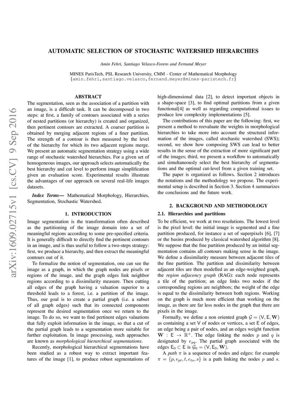 The segmentation, seen as the association of a partition with an image, is a difficult task. It can be decomposed in two steps: at first, a family of contours associated with a series of nested partitions (or hierarchy) is created and organized, then pertinent contours are extracted. A coarser partition is obtained by merging adjacent regions of a finer partition. The strength of a contour is then measured by the level of the hierarchy for which its two adjacent regions merge. We present an automatic segmentation strategy using a wide range of stochastic watershed hierarchies. For a given set of homogeneous images, our approach selects automatically the best hierarchy and cut level to perform image simplification given an evaluation score. Experimental results illustrate the advantages of our approach on several real-life images datasets.