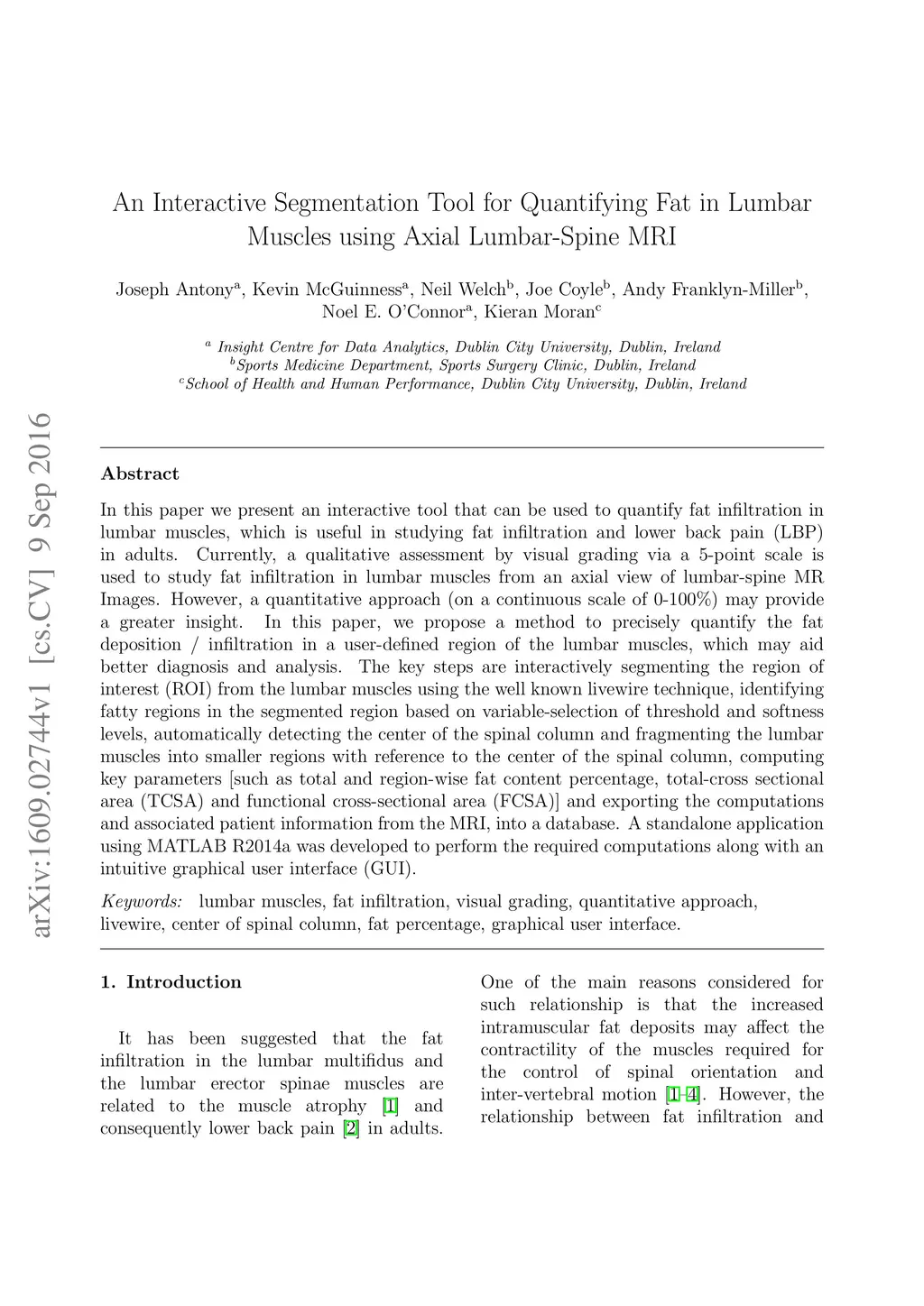 An Interactive Segmentation Tool for Quantifying Fat in Lumbar Muscles