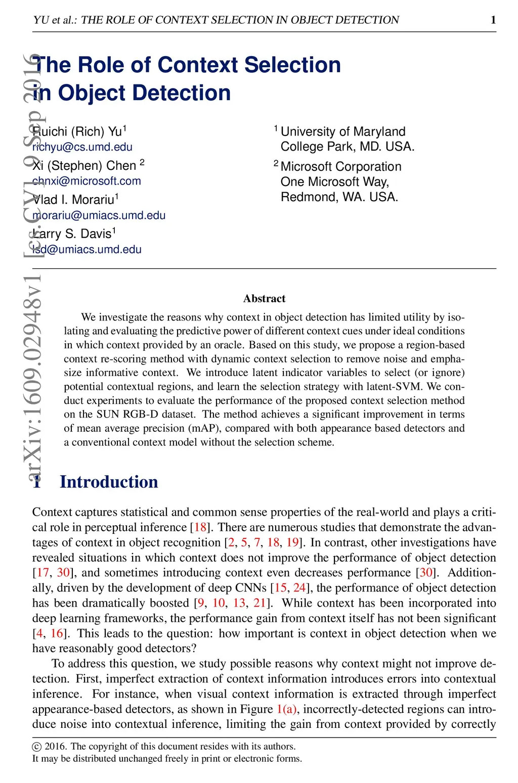 We investigate the reasons why context in object detection has limited utility by isolating and evaluating the predictive power of different context cues under ideal conditions in which context provided by an oracle. Based on this study, we propose a region-based context re-scoring method with dynamic context selection to remove noise and emphasize informative context. We introduce latent indicator variables to select (or ignore) potential contextual regions, and learn the selection strategy with latent-SVM. We conduct experiments to evaluate the performance of the proposed context selection method on the SUN RGB-D dataset. The method achieves a significant improvement in terms of mean average precision (mAP), compared with both appearance based detectors and a conventional context model without the selection scheme.