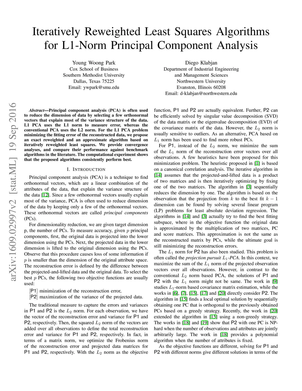 Iteratively Reweighted Least Squares Algorithms for L1-Norm Principal