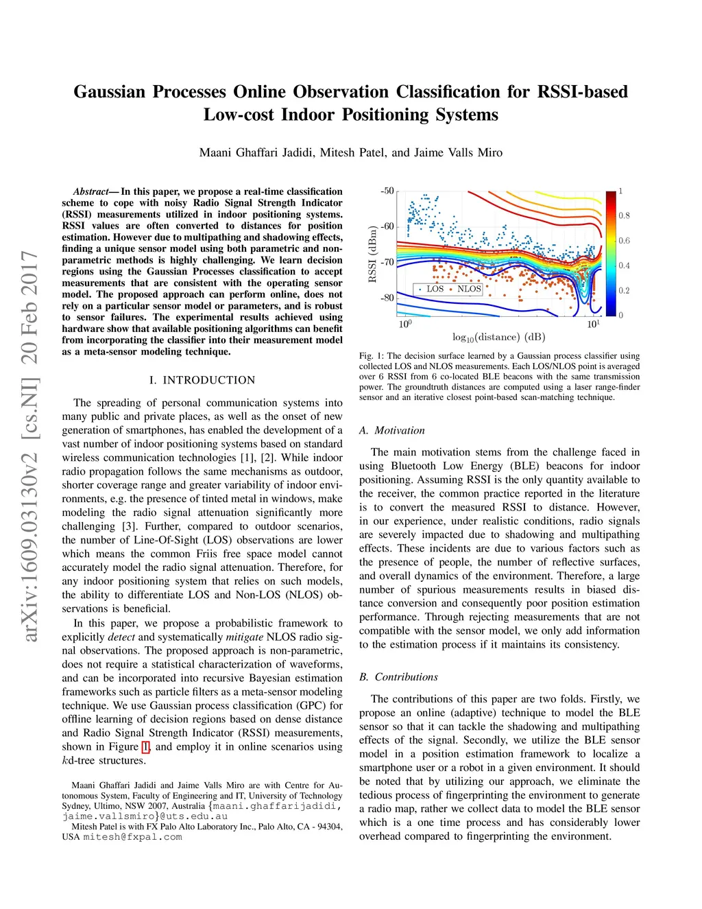 Gaussian Processes Online Observation Classification for RSSI-based
