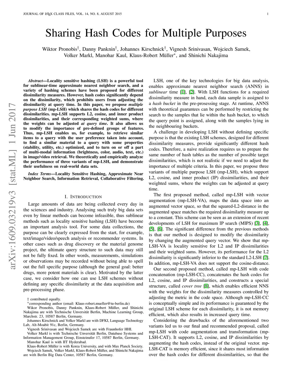 Locality sensitive hashing (LSH) is a powerful tool for sublinear-time approximate nearest neighbor search, and a variety of hashing schemes have been proposed for different dissimilarity measures. However, hash codes significantly depend on the dissimilarity, which prohibits users from adjusting the dissimilarity at query time. In this paper, we propose {multiple purpose LSH (mp-LSH) which shares the hash codes for different dissimilarities. mp-LSH supports L2, cosine, and inner product dissimilarities, and their corresponding weighted sums, where the weights can be adjusted at query time. It also allows us to modify the importance of pre-defined groups of features. Thus, mp-LSH enables us, for example, to retrieve similar items to a query with the user preference taken into account, to find a similar material to a query with some properties (stability, utility, etc.) optimized, and to turn on or off a part of multi-modal information (brightness, color, audio, text, etc.) in image/video retrieval. We theoretically and empirically analyze the performance of three variants of mp-LSH, and demonstrate their usefulness on real-world data sets.