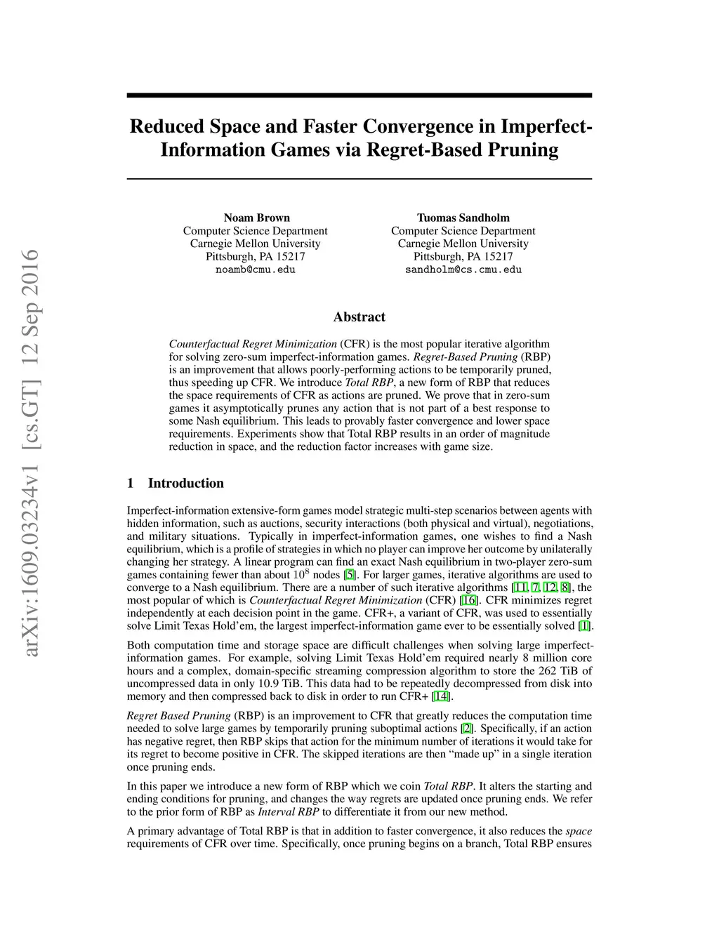 Regret-Based Pruning
