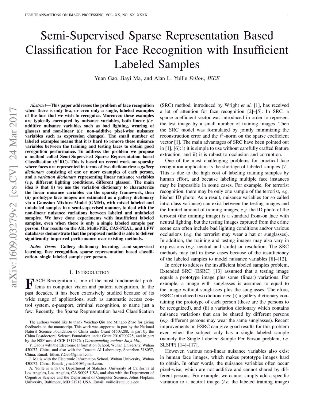 Semi-Supervised Sparse Representation Based Classification for Face