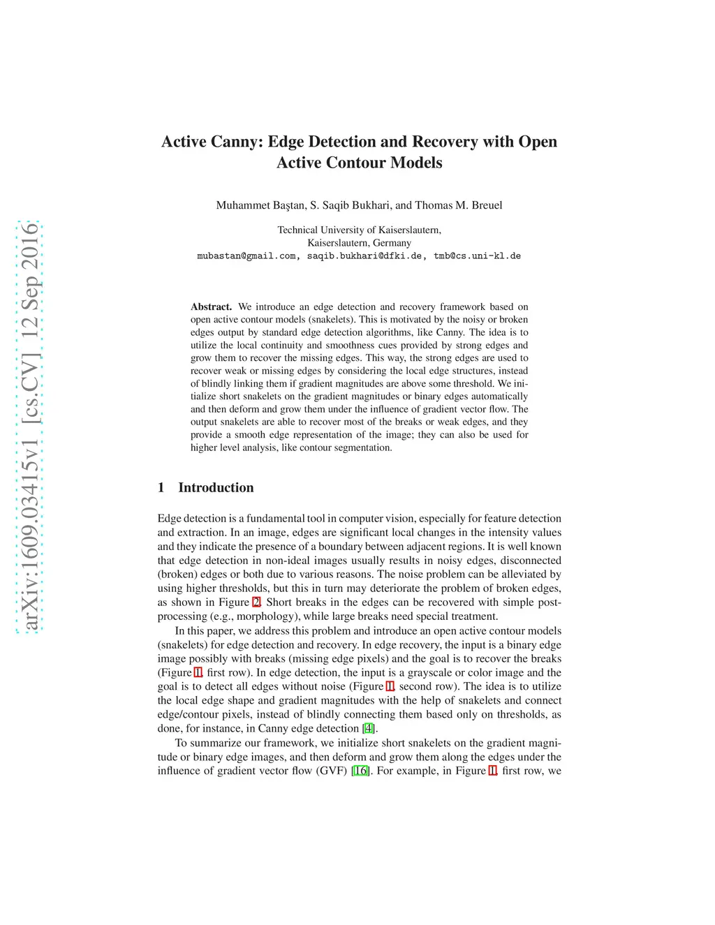 Active Canny: Edge Detection and Recovery with Open Active Contour