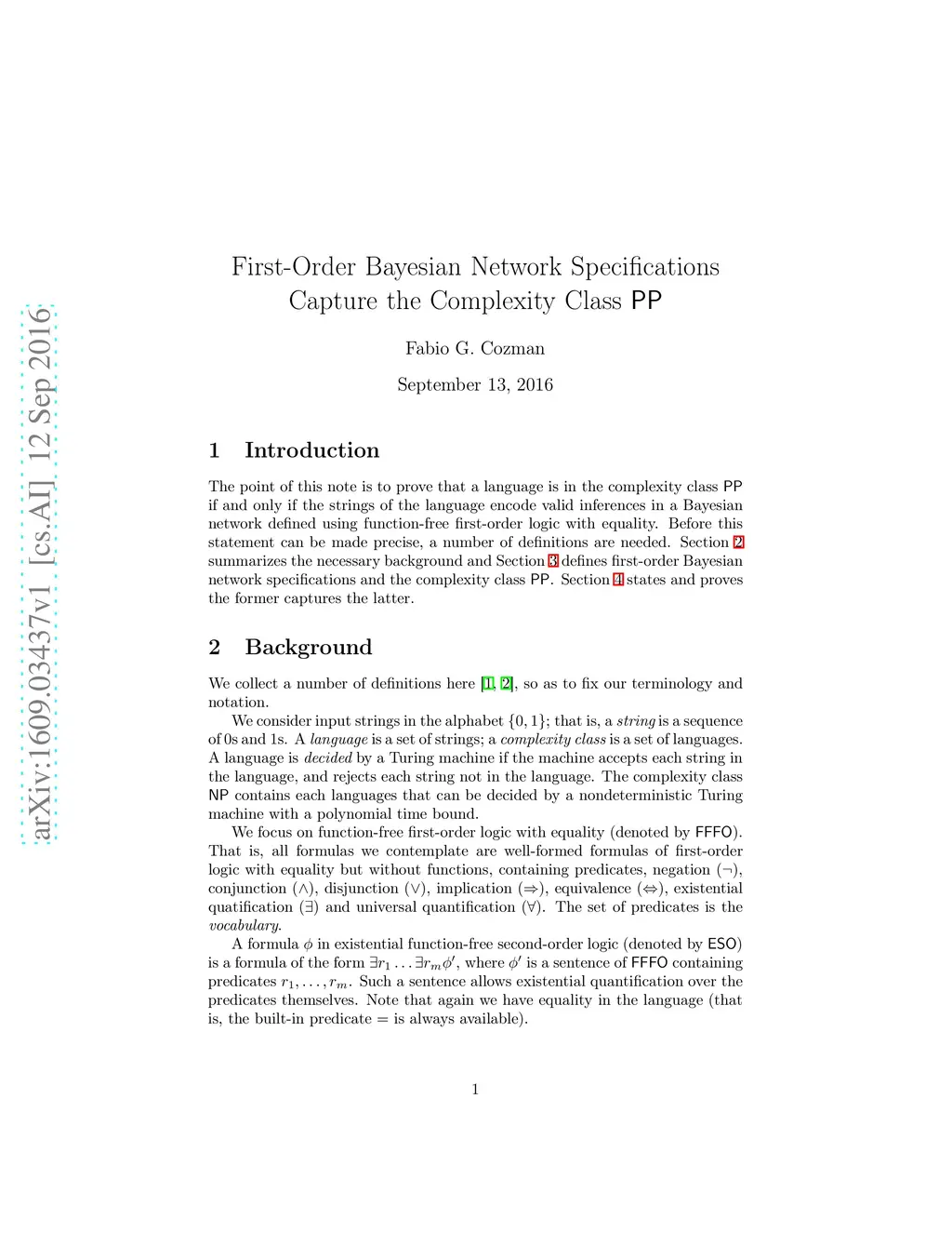 The point of this note is to prove that a language is in the complexity class PP if and only if the strings of the language encode valid inferences in a Bayesian network defined using function-free first-order logic with equality.