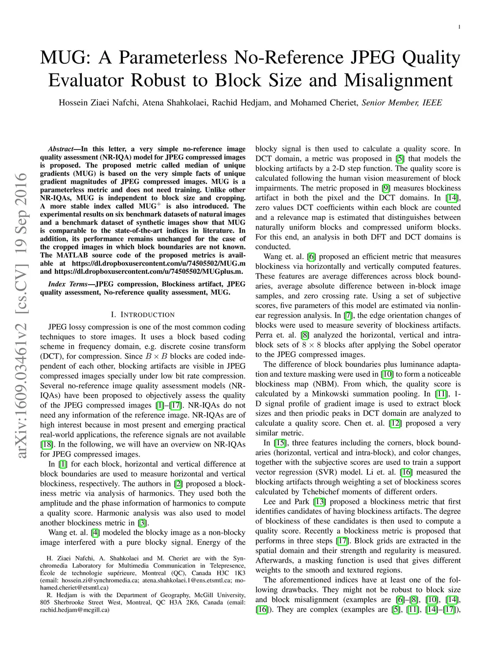 MUG: A Parameterless No-Reference JPEG Quality Evaluator Robust to Block