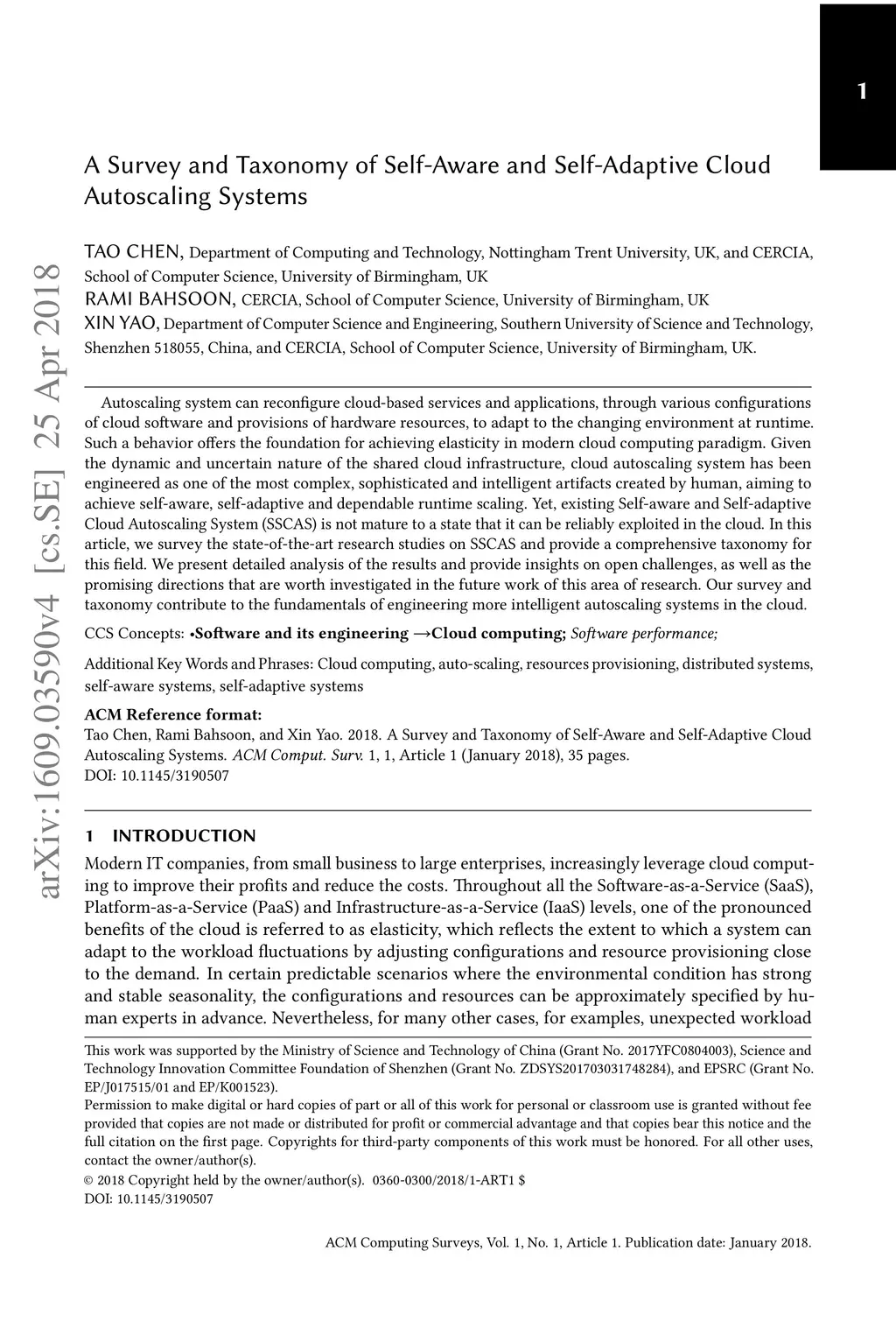 Survey and Taxonomy of Self-Aware and Self-Adaptive Autoscaling Systems