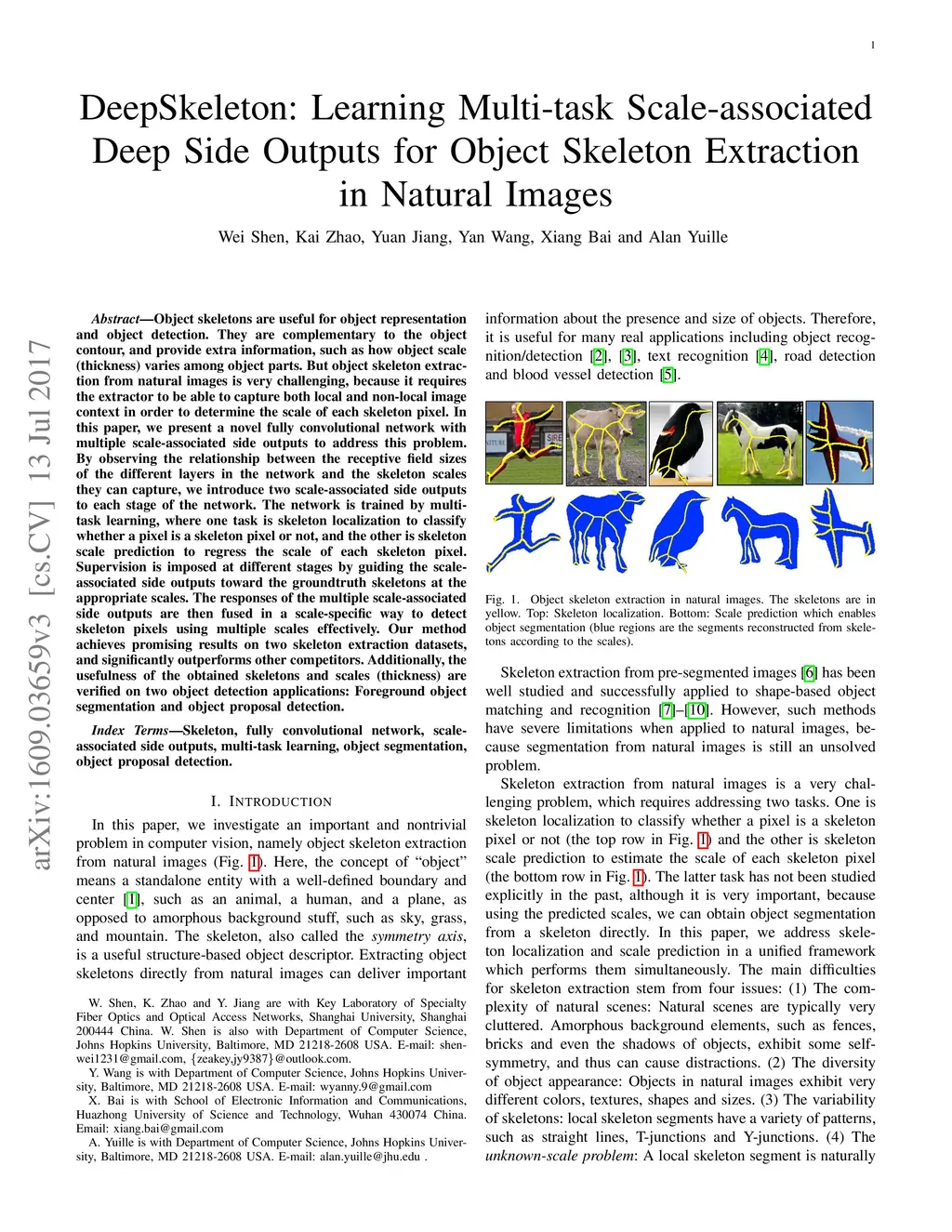 DeepSkeleton: Learning Multi-task Scale-associated Deep Side Outputs for