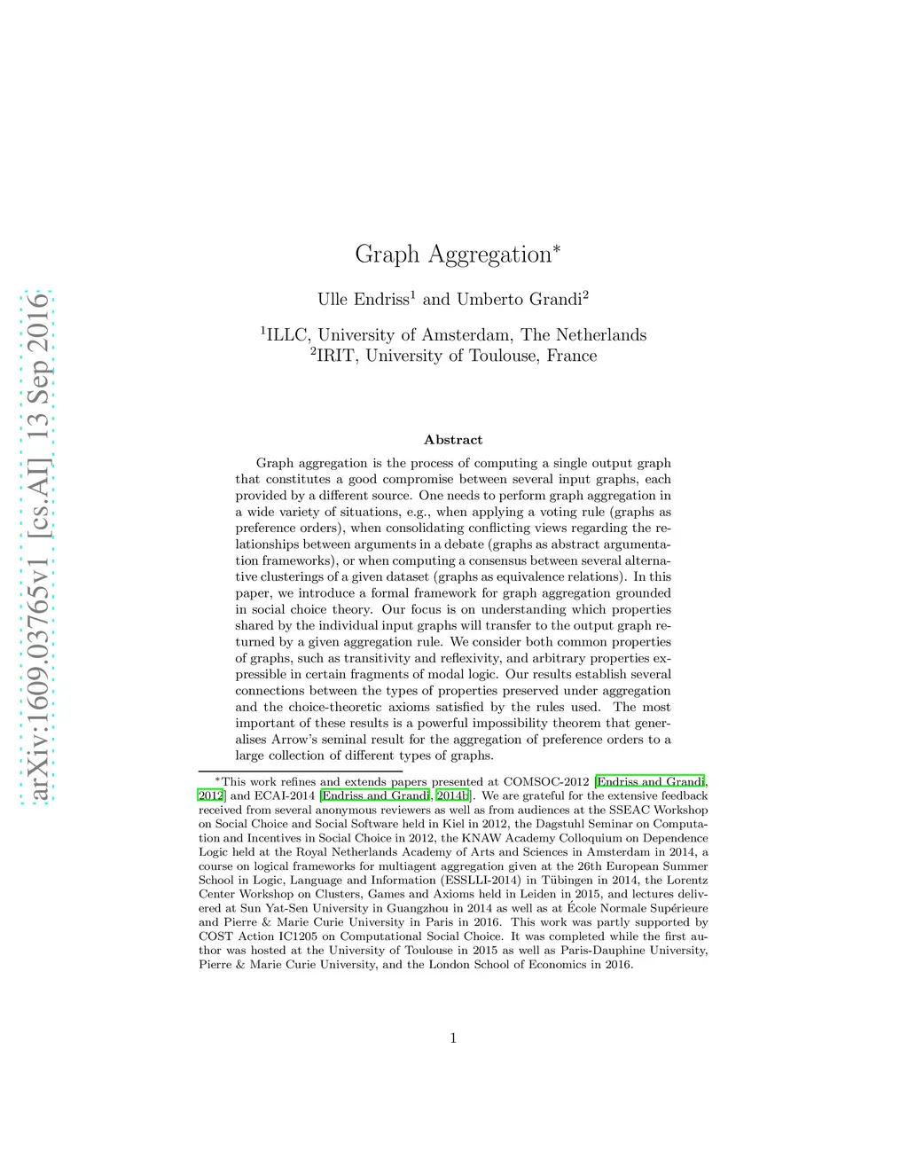 Graph aggregation is the process of computing a single output graph that constitutes a good compromise between several input graphs, each provided by a different source. One needs to perform graph aggregation in a wide variety of situations, e.g., when applying a voting rule (graphs as preference orders), when consolidating conflicting views regarding the relationships between arguments in a debate (graphs as abstract argumentation frameworks), or when computing a consensus between several alternative clusterings of a given dataset (graphs as equivalence relations). In this paper, we introduce a formal framework for graph aggregation grounded in social choice theory. Our focus is on understanding which properties shared by the individual input graphs will transfer to the output graph returned by a given aggregation rule. We consider both common properties of graphs, such as transitivity and reflexivity, and arbitrary properties expressible in certain fragments of modal logic. Our results establish several connections between the types of properties preserved under aggregation and the choice-theoretic axioms satisfied by the rules used. The most important of these results is a powerful impossibility theorem that generalises Arrow's seminal result for the aggregation of preference orders to a large collection of different types of graphs.