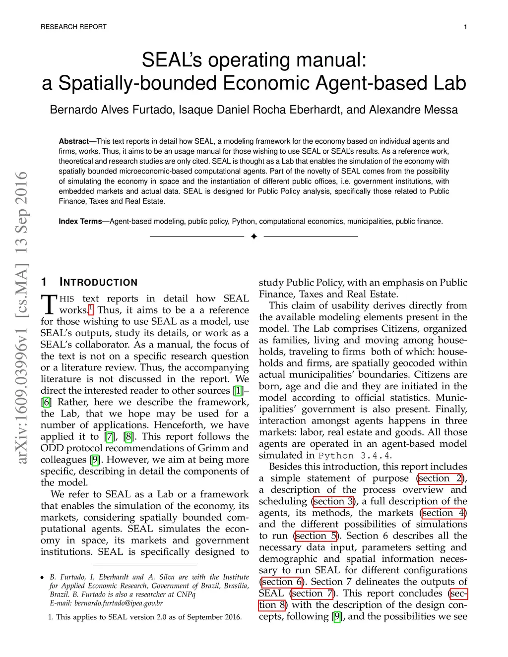 This text reports in detail how SEAL, a modeling framework for the economy based on individual agents and firms, works. Thus, it aims to be an usage manual for those wishing to use SEAL or SEAL's results. As a reference work, theoretical and research studies are only cited. SEAL is thought as a Lab that enables the simulation of the economy with spatially bounded microeconomic-based computational agents. Part of the novelty of SEAL comes from the possibility of simulating the economy in space and the instantiation of different public offices, i.e. government institutions, with embedded markets and actual data. SEAL is designed for Public Policy analysis, specifically those related to Public Finance, Taxes and Real Estate.