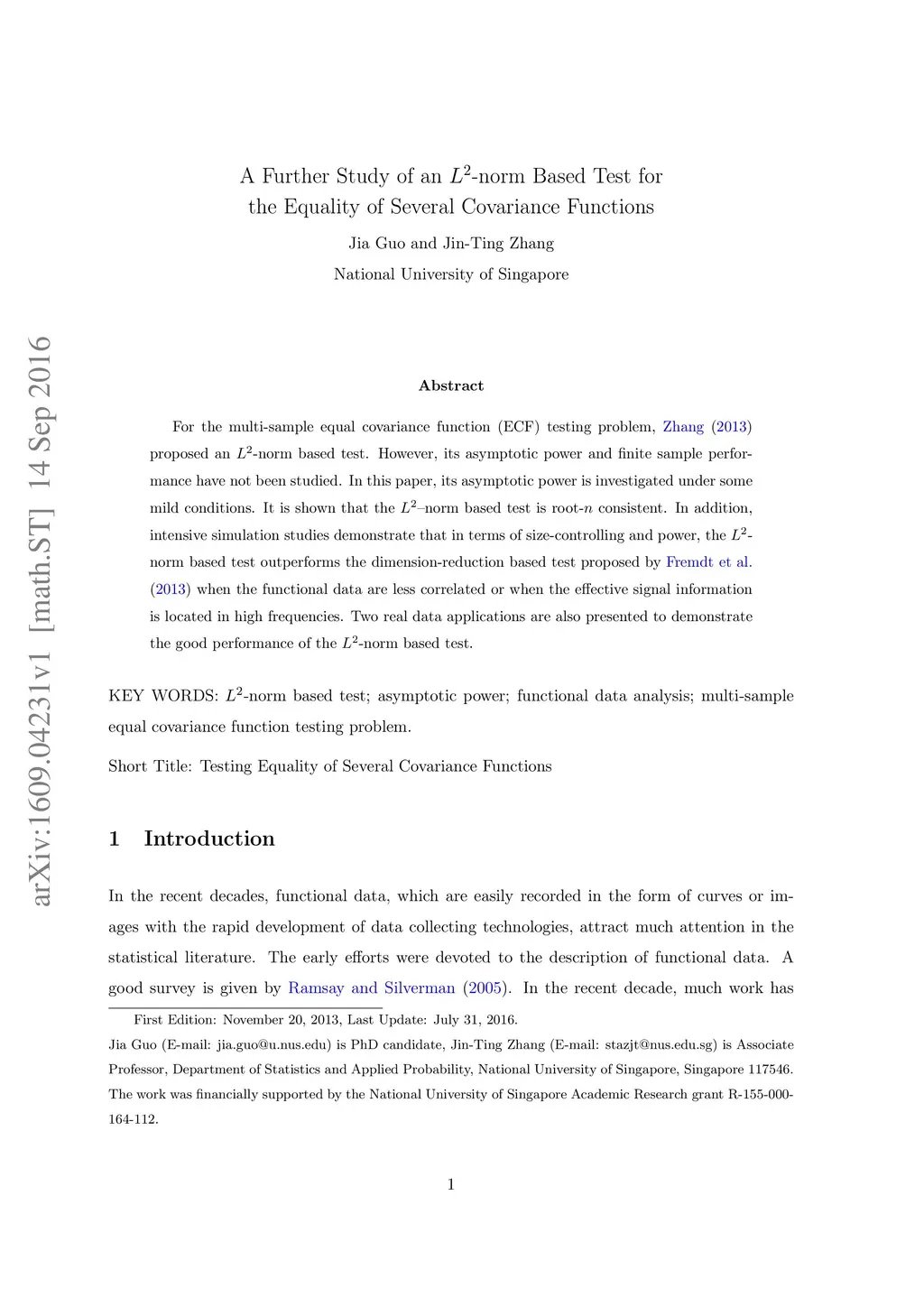 For the multi-sample equal covariance function (ECF) testing problem, Zhang (2013) proposed an -norm based test. However, its asymptotic power and finite sample performance have not been studied. In this paper, its asymptotic power is investigated under some mild conditions. It is shown that the -norm based test is root- consistent. In addition, intensive simulation studies demonstrate that in terms of size-controlling and power, the -norm based test outperforms the dimension-reduction based test proposed by Fremdt et al. (2013) when the functional data are less correlated or when the effective signal information is located in high frequencies. Two real data applications are also presented to demonstrate the good performance of the -norm based test.