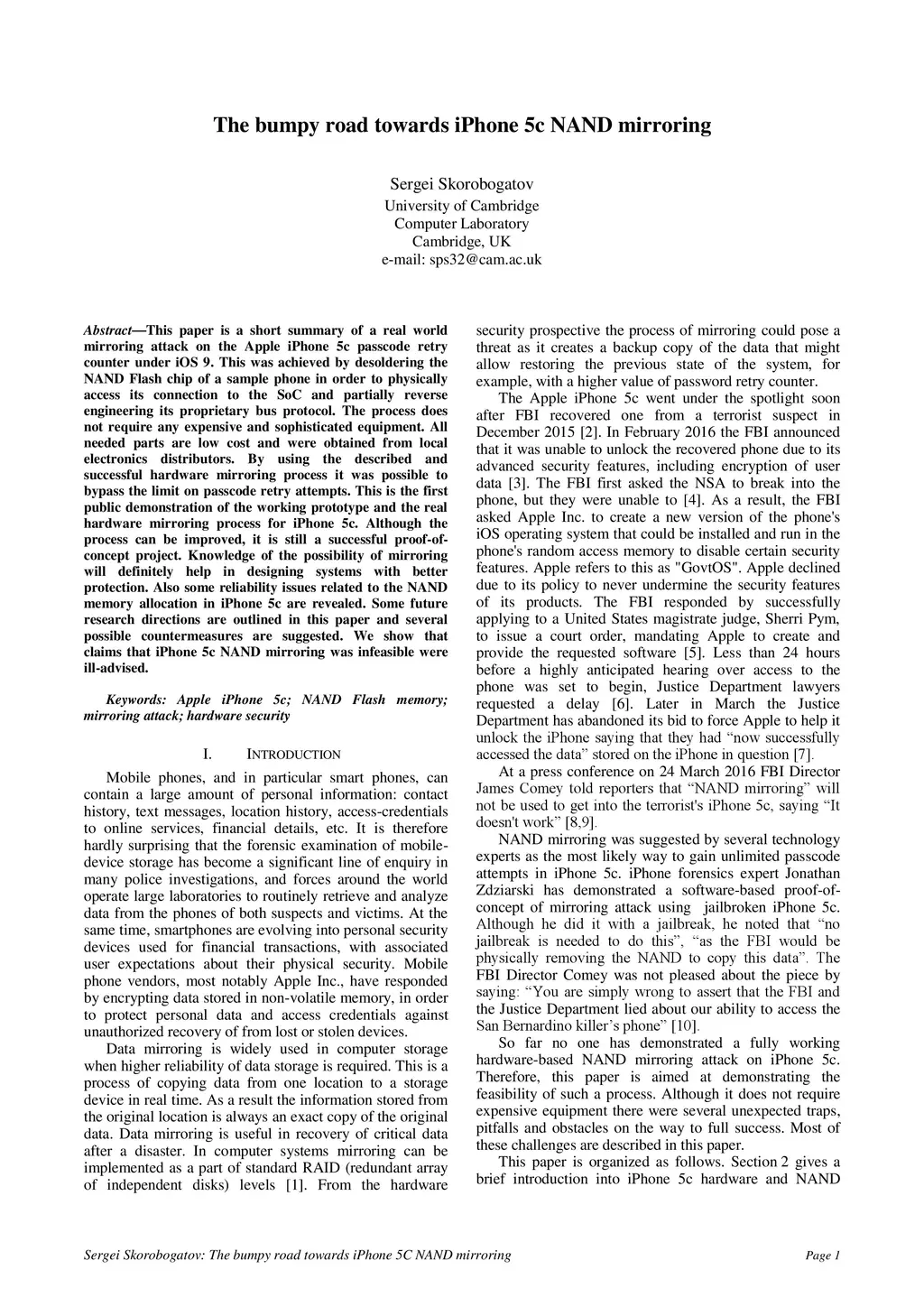 This paper is a short summary of a real world mirroring attack on the Apple iPhone 5c passcode retry counter under iOS 9. This was achieved by desoldering the NAND Flash chip of a sample phone in order to physically access its connection to the SoC and partially reverse engineering its proprietary bus protocol. The process does not require any expensive and sophisticated equipment. All needed parts are low cost and were obtained from local electronics distributors. By using the described and successful hardware mirroring process it was possible to bypass the limit on passcode retry attempts. This is the first public demonstration of the working prototype and the real hardware mirroring process for iPhone 5c. Although the process can be improved, it is still a successful proof-of-concept project. Knowledge of the possibility of mirroring will definitely help in designing systems with better protection. Also some reliability issues related to the NAND memory allocation in iPhone 5c are revealed. Some future research directions are outlined in this paper and several possible countermeasures are suggested. We show that claims that iPhone 5c NAND mirroring was infeasible were ill-advised.