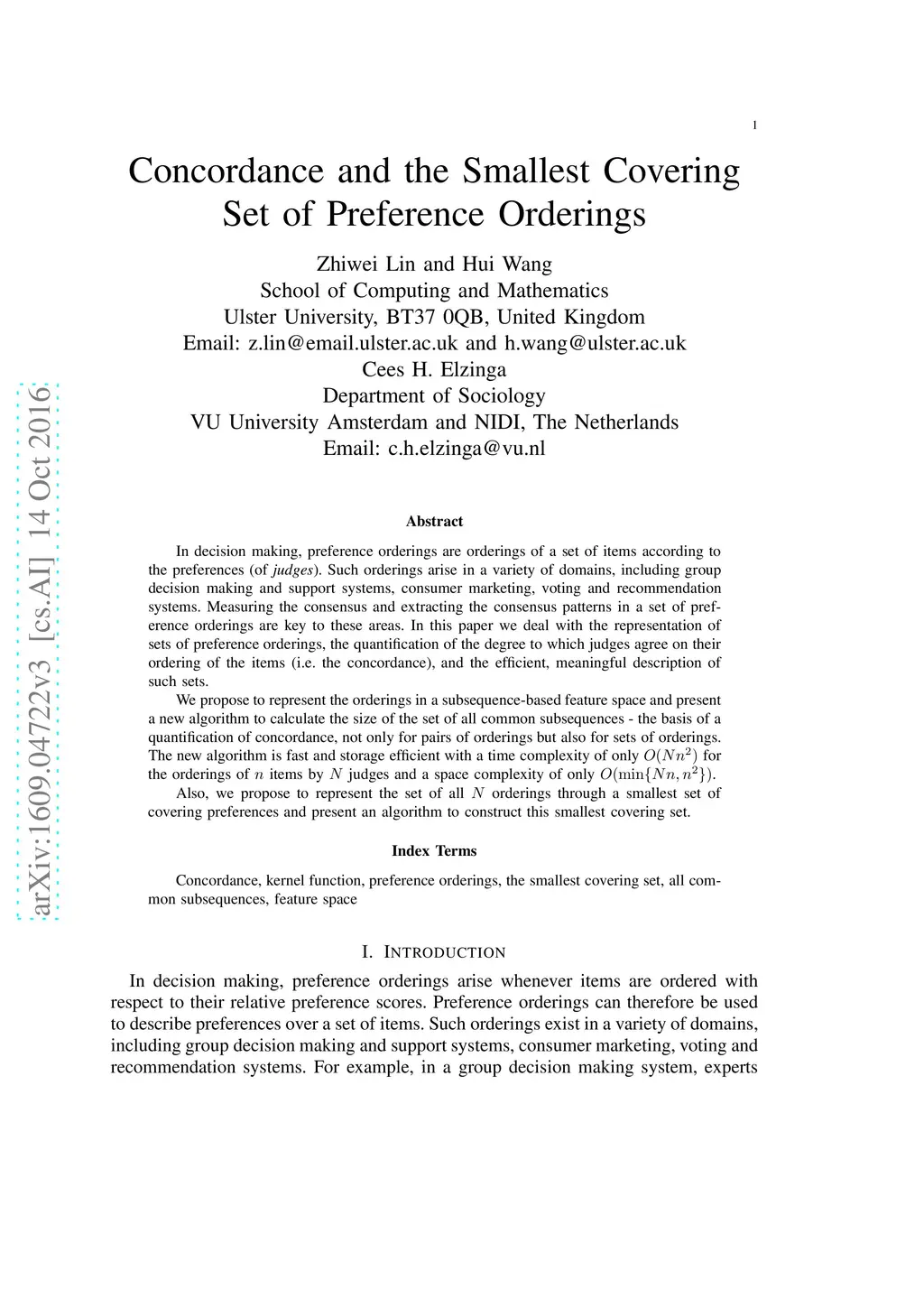Concordance and the Smallest Covering Set of Preference Orderings