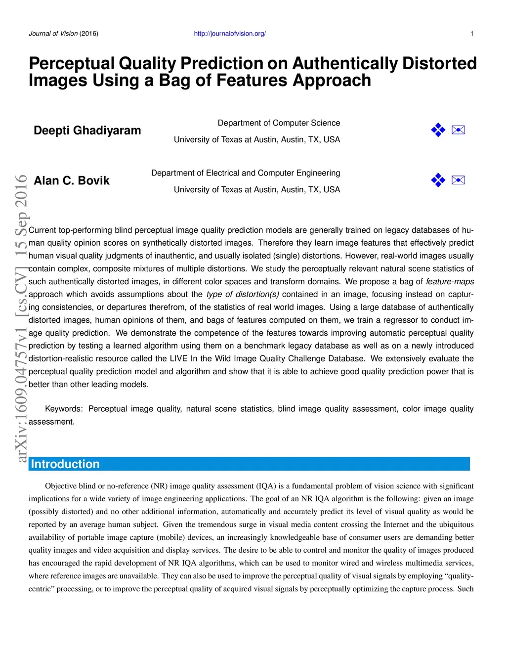 Perceptual Quality Prediction on Authentically Distorted Images Using a