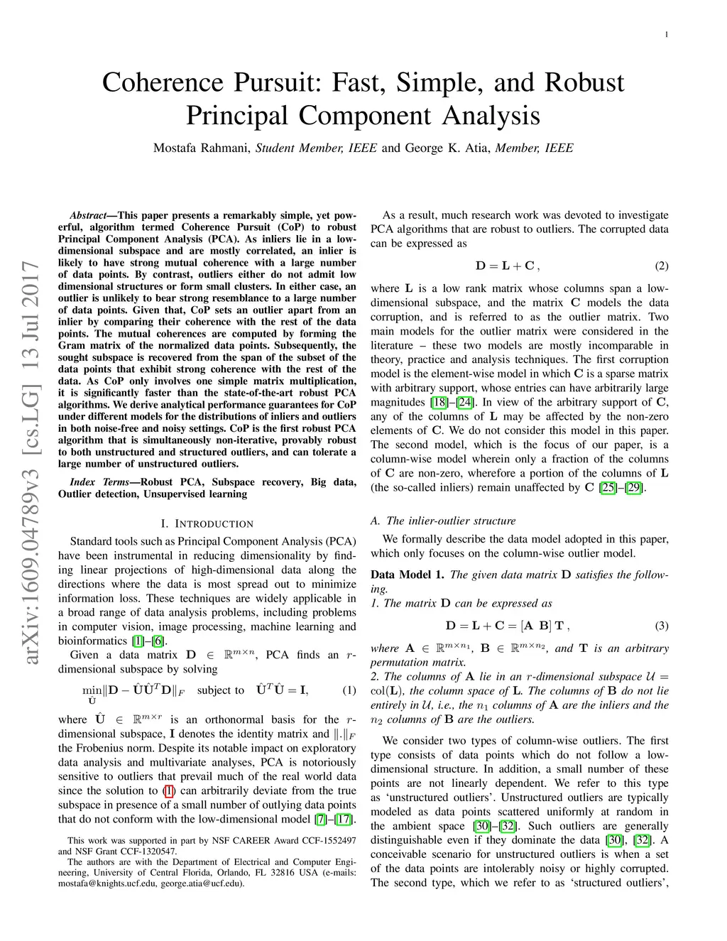 Coherence Pursuit: Fast, Simple, and Robust Principal Component Analysis