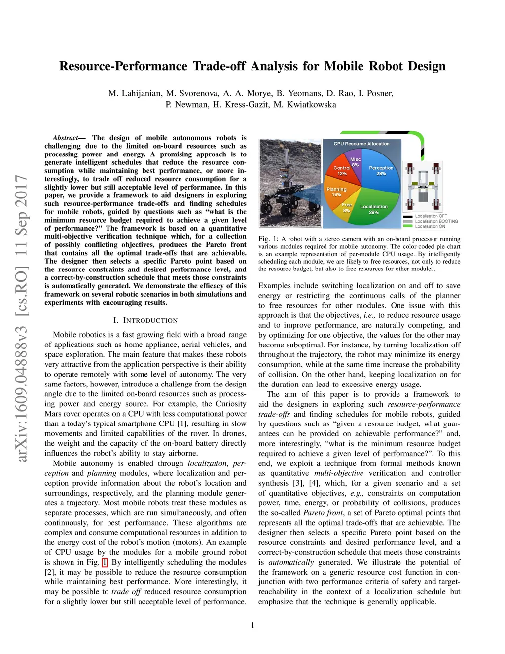 Resource-Performance Trade-off Analysis for Mobile Robot Design