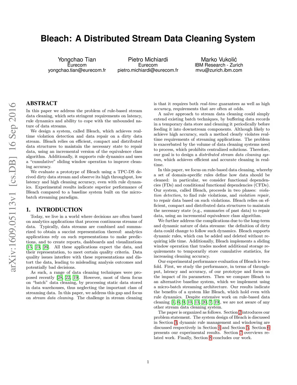 Bleach: A Distributed Stream Data Cleaning System