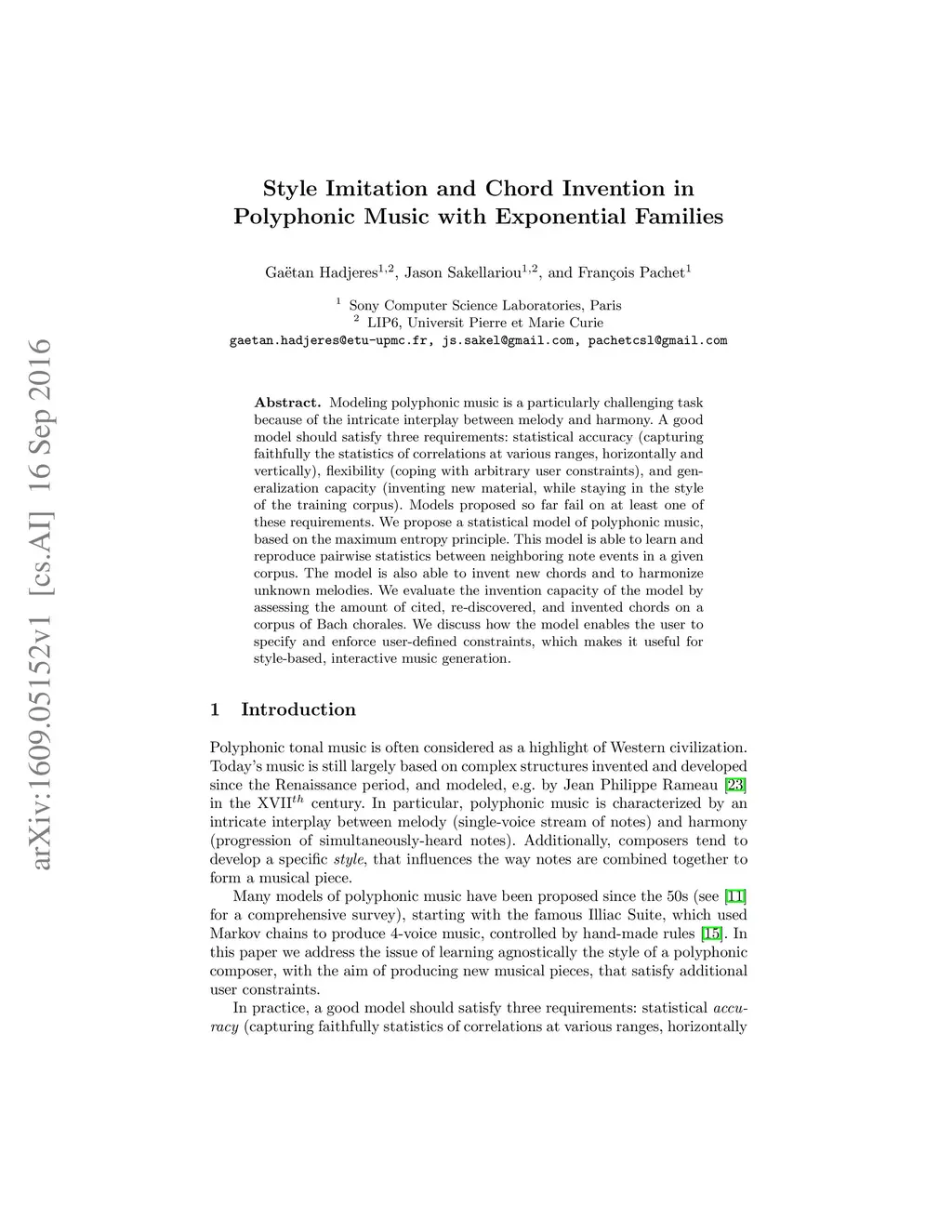 Style Imitation and Chord Invention in Polyphonic Music with Exponential