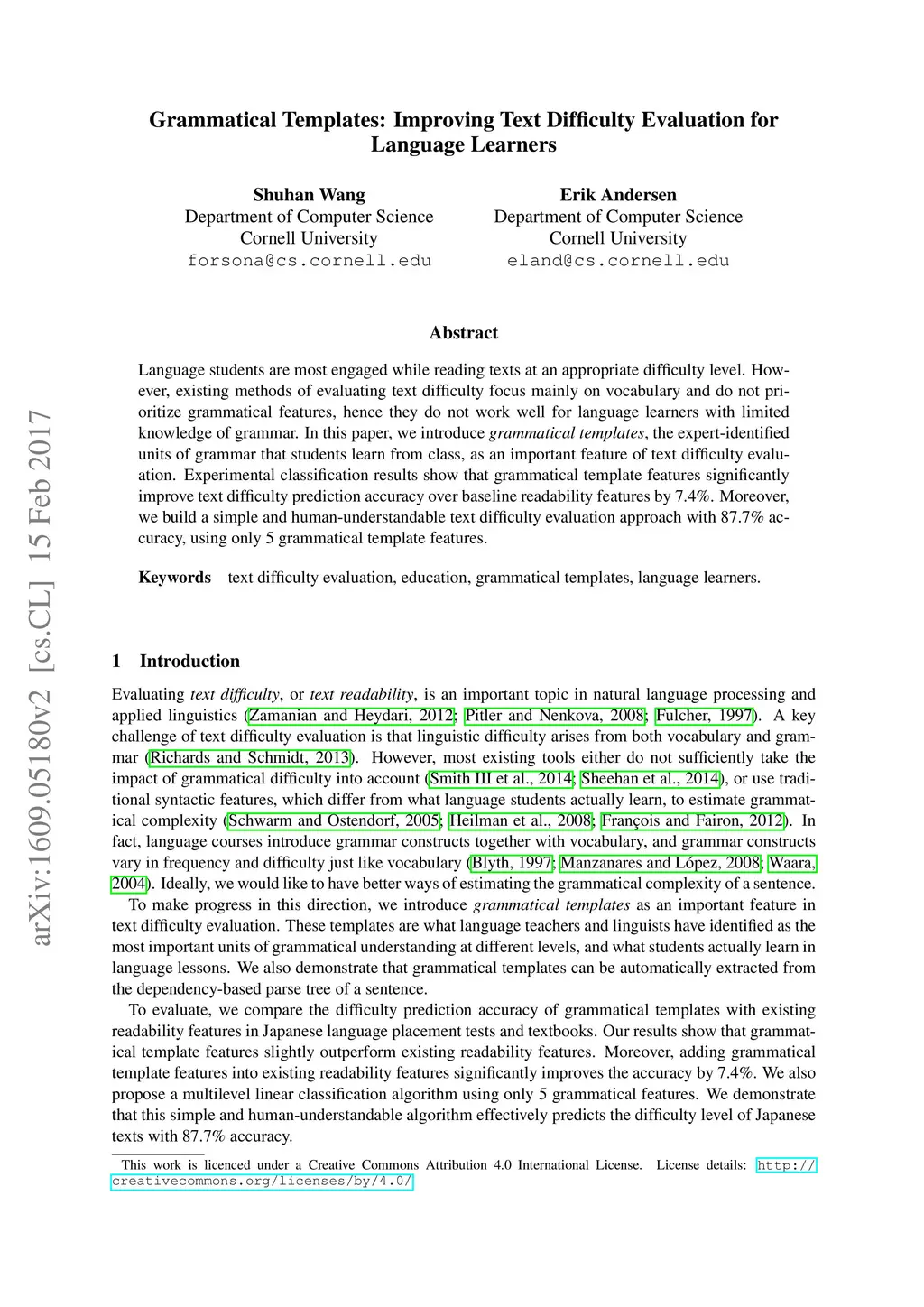 Grammatical Templates: Improving Text Difficulty Evaluation for Language