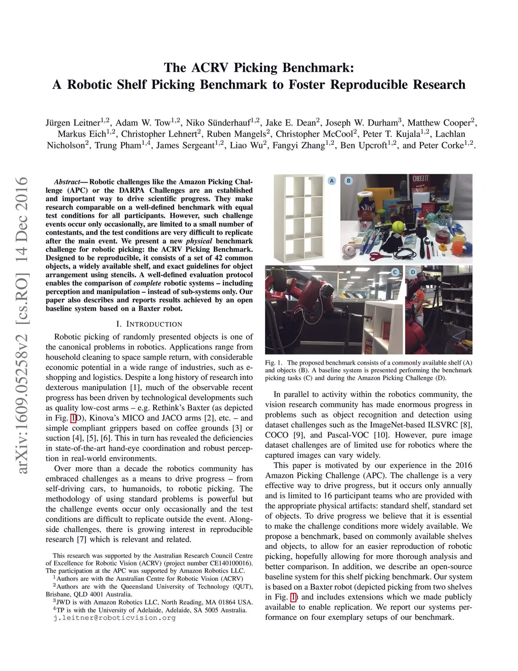 The ACRV Picking Benchmark (APB): A Robotic Shelf Picking Benchmark to