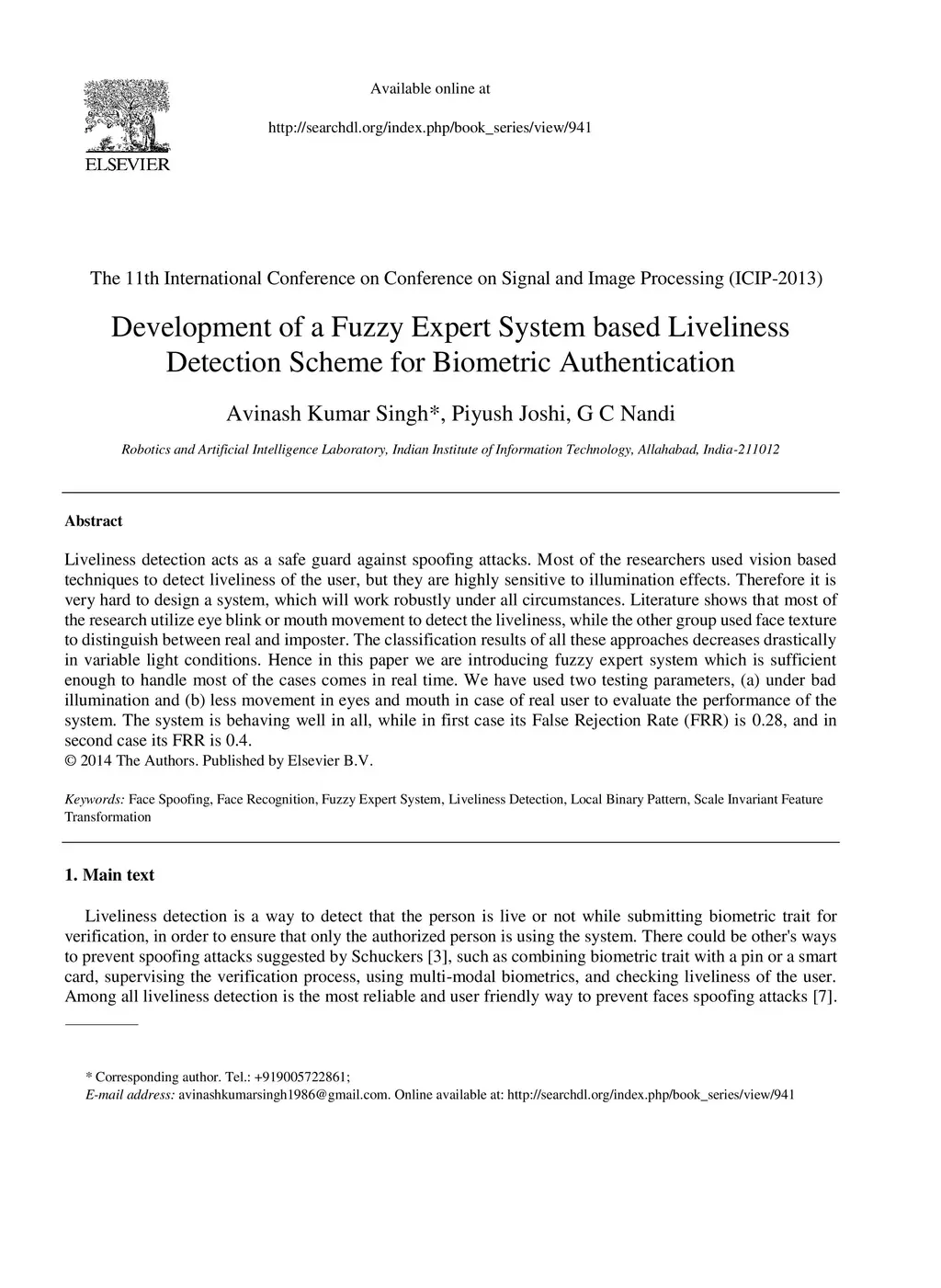 Development of a Fuzzy Expert System based Liveliness Detection Scheme