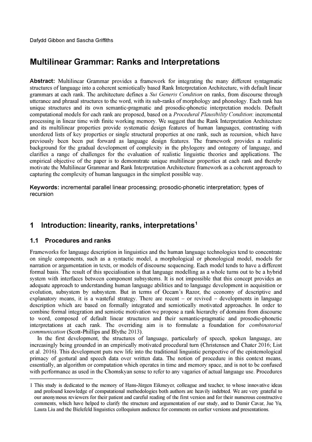 Multilinear Grammar provides a framework for integrating the many different syntagmatic structures of language into a coherent semiotically based Rank Interpretation Architecture, with default linear grammars at each rank. The architecture defines a Sui Generis Condition on ranks, from discourse through utterance and phrasal structures to the word, with its sub-ranks of morphology and phonology. Each rank has unique structures and its own semantic-pragmatic and prosodic-phonetic interpretation models. Default computational models for each rank are proposed, based on a Procedural Plausibility Condition: incremental processing in linear time with finite working memory. We suggest that the Rank Interpretation Architecture and its multilinear properties provide systematic design features of human languages, contrasting with unordered lists of key properties or single structural properties at one rank, such as recursion, which have previously been been put forward as language design features. The framework provides a realistic background for the gradual development of complexity in the phylogeny and ontogeny of language, and clarifies a range of challenges for the evaluation of realistic linguistic theories and applications. The empirical objective of the paper is to demonstrate unique multilinear properties at each rank and thereby motivate the Multilinear Grammar and Rank Interpretation Architecture framework as a coherent approach to capturing the complexity of human languages in the simplest possible way.