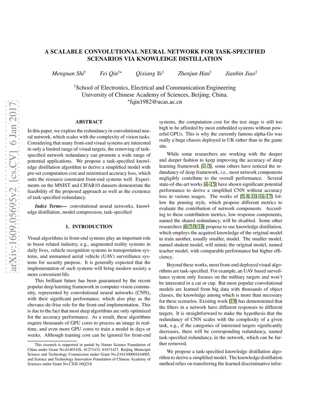 In this paper, we explore the redundancy in convolutional neural network, which scales with the complexity of vision tasks. Considering that many front-end visual systems are interested in only a limited range of visual targets, the removing of task-specified network redundancy can promote a wide range of potential applications. We propose a task-specified knowledge distillation algorithm to derive a simplified model with pre-set computation cost and minimized accuracy loss, which suits the resource constraint front-end systems well. Experiments on the MNIST and CIFAR10 datasets demonstrate the feasibility of the proposed approach as well as the existence of task-specified redundancy.