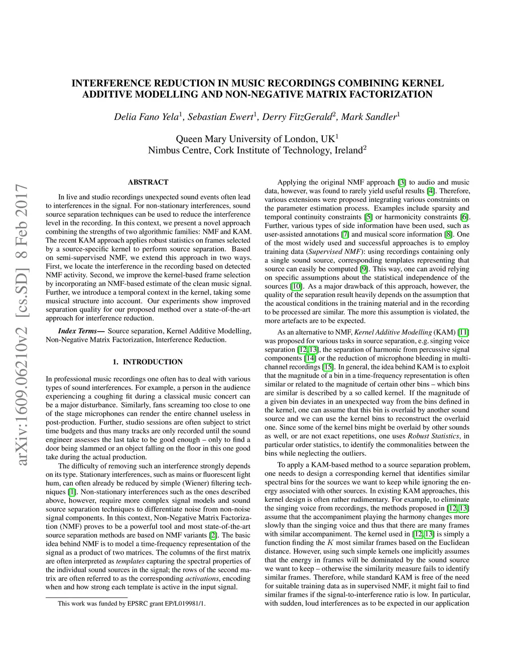 In live and studio recordings unexpected sound events often lead to interferences in the signal. For non-stationary interferences, sound source separation techniques can be used to reduce the interference level in the recording. In this context, we present a novel approach combining the strengths of two algorithmic families: NMF and KAM. The recent KAM approach applies robust statistics on frames selected by a source-specific kernel to perform source separation. Based on semi-supervised NMF, we extend this approach in two ways. First, we locate the interference in the recording based on detected NMF activity. Second, we improve the kernel-based frame selection by incorporating an NMF-based estimate of the clean music signal. Further, we introduce a temporal context in the kernel, taking some musical structure into account. Our experiments show improved separation quality for our proposed method over a state-of-the-art approach for interference reduction.
