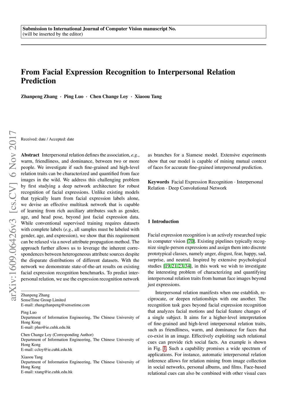 From Facial Expression Recognition to Interpersonal Relation Prediction
