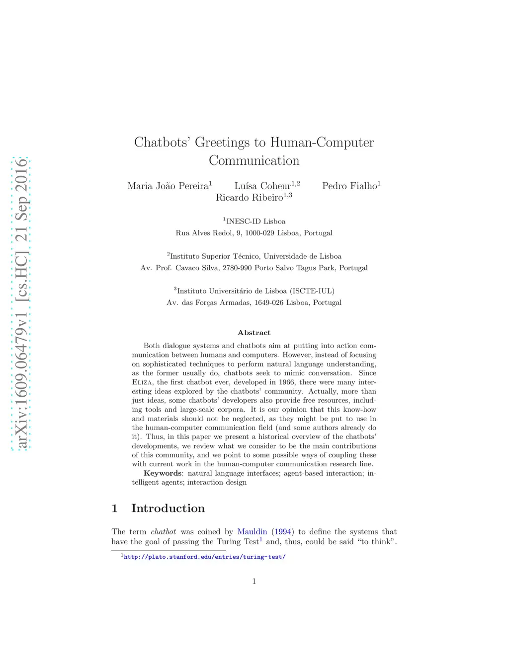 Both dialogue systems and chatbots aim at putting into action communication between humans and computers. However, instead of focusing on sophisticated techniques to perform natural language understanding, as the former usually do, chatbots seek to mimic conversation. Since Eliza, the first chatbot ever, developed in 1966, there were many interesting ideas explored by the chatbots' community. Actually, more than just ideas, some chatbots' developers also provide free resources, including tools and large-scale corpora. It is our opinion that this know-how and materials should not be neglected, as they might be put to use in the human-computer communication field (and some authors already do it). Thus, in this paper we present a historical overview of the chatbots' developments, we review what we consider to be the main contributions of this community, and we point to some possible ways of coupling these with current work in the human-computer communication research line.