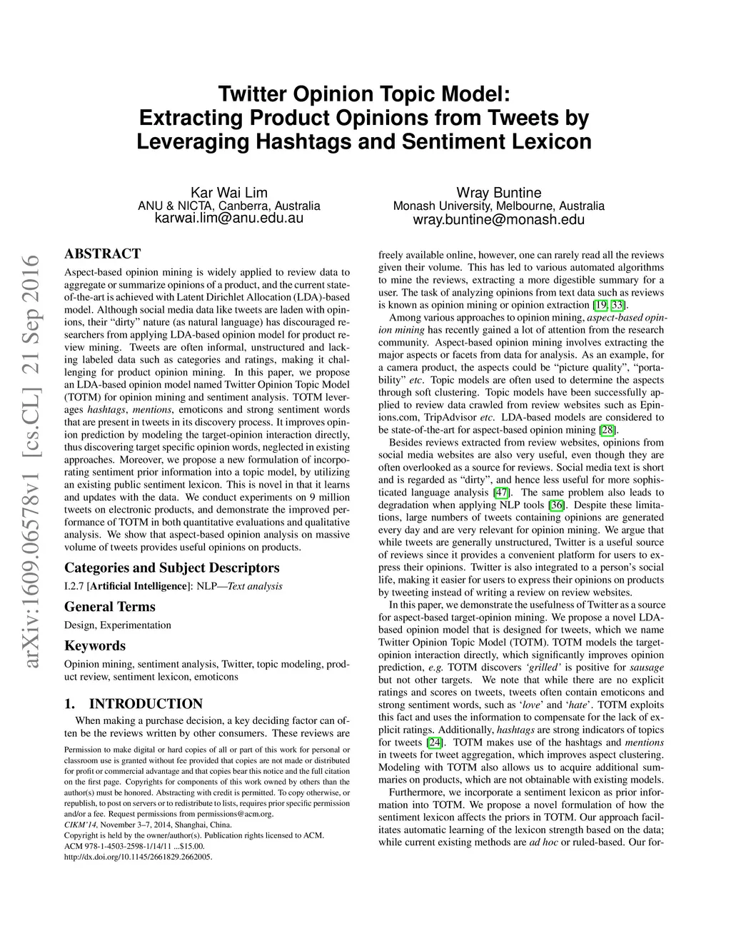 Twitter Opinion Topic Model: Extracting Product Opinions from Tweets by