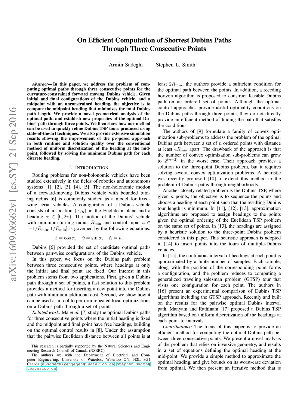 On Efficient Computation of Shortest Dubins Paths Through Three