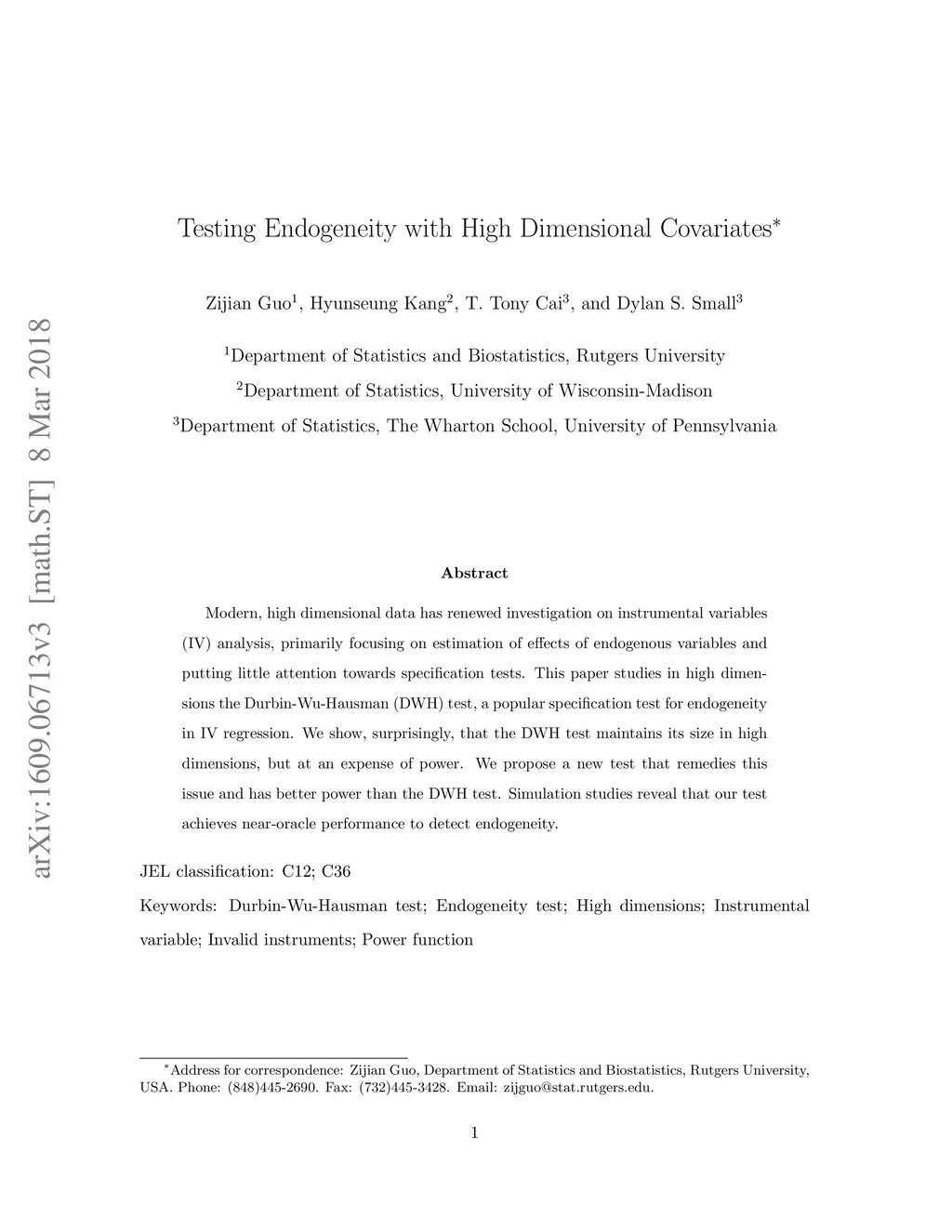 Testing Endogeneity with High Dimensional Covariates