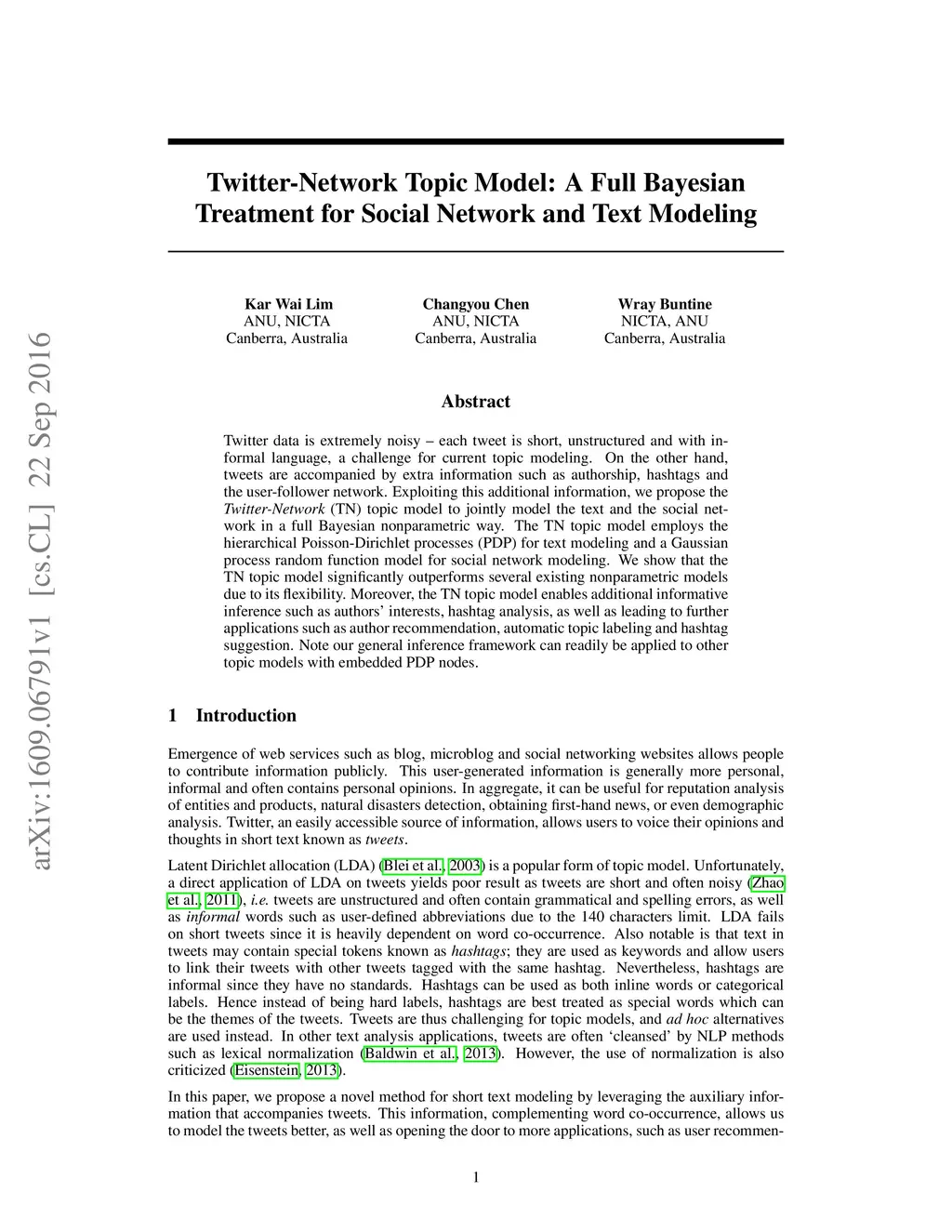 Twitter-Network Topic Model: A Full Bayesian Treatment for Social