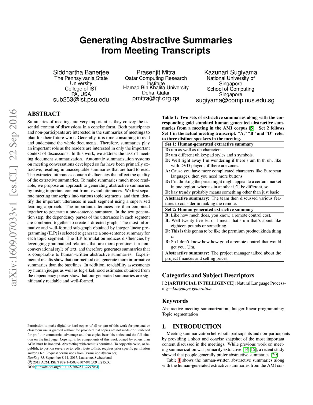 Generating Abstractive Summaries from Meeting Transcripts