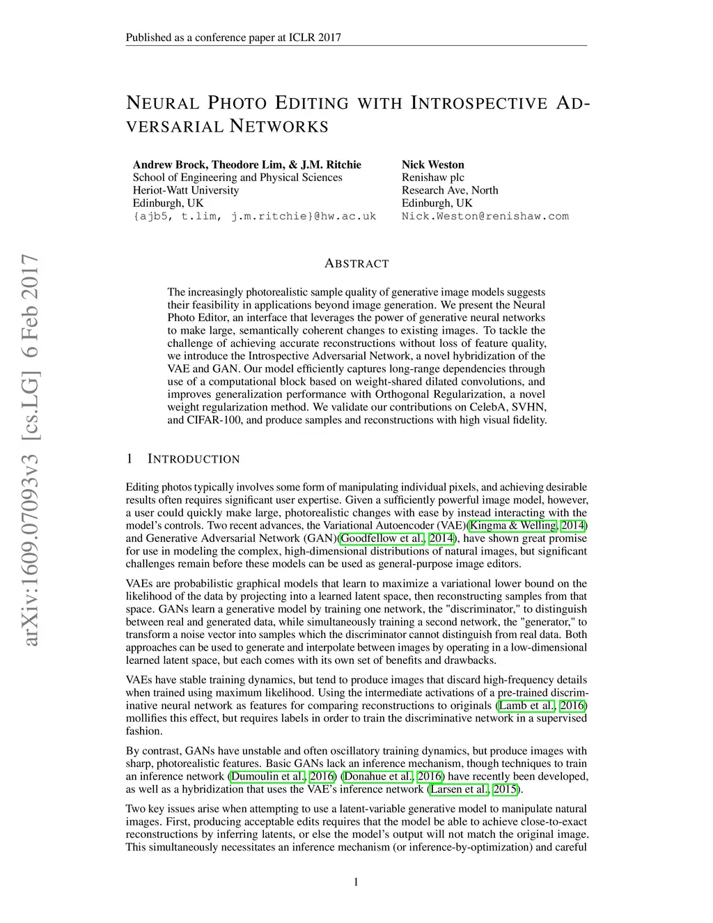 Neural Photo Editing with Introspective Adversarial Networks