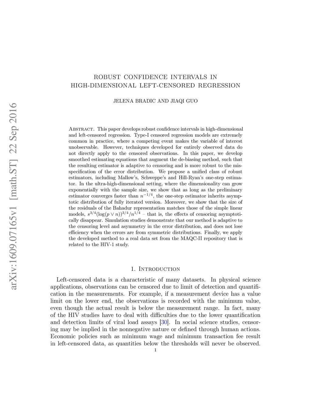 This paper develops robust confidence intervals in high-dimensional and left-censored regression. Type-I censored regression models are extremely common in practice, where a competing event makes the variable of interest unobservable. However, techniques developed for entirely observed data do not directly apply to the censored observations. In this paper, we develop smoothed estimating equations that augment the de-biasing method, such that the resulting estimator is adaptive to censoring and is more robust to the misspecification of the error distribution. We propose a unified class of robust estimators, including Mallow's, Schweppe's and Hill-Ryan's one-step estimator. In the ultra-high-dimensional setting, where the dimensionality can grow exponentially with the sample size, we show that as long as the preliminary estimator converges faster than , the one-step estimator inherits asymptotic distribution of fully iterated version. Moreover, we show that the size of the residuals of the Bahadur representation matches those of the simple linear models, -- that is, the effects of censoring asymptotically disappear. Simulation studies demonstrate that our method is adaptive to the censoring level and asymmetry in the error distribution, and does not lose efficiency when the errors are from symmetric distributions. Finally, we apply the developed method to a real data set from the MAQC-II repository that is related to the HIV-1 study.